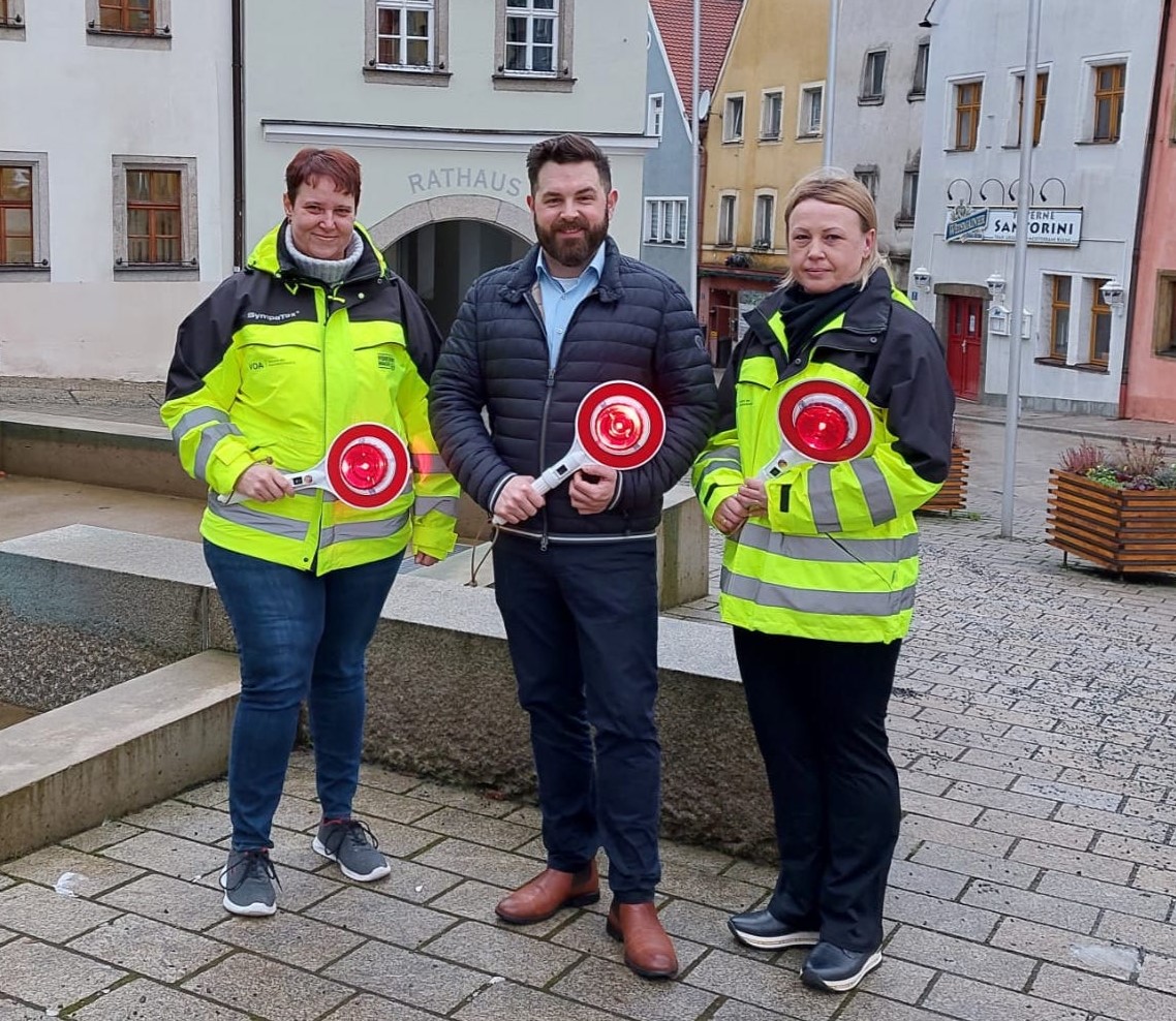 Die Stadt Neustadt/WN hat die beiden ehrenamtlichen Schulweghelferinnen Andrea Rudolph und Valentina Jäger jetzt mit beleuchteten Winkerkellen ausgestattet. Außerdem sucht die Stadt Neustadt/WN eine neue Vertretung für Andrea Rudolph. „Es ist mir wichtig, dass sowohl die Kinder als auch die Schulweghelferinnen besser gesehen und dadurch geschützt werden“, so Bürgermeister Sebastian Dippold, „deshalb haben beide jetzt eine Winkerkelle mit Beleuchtung bekommen“.