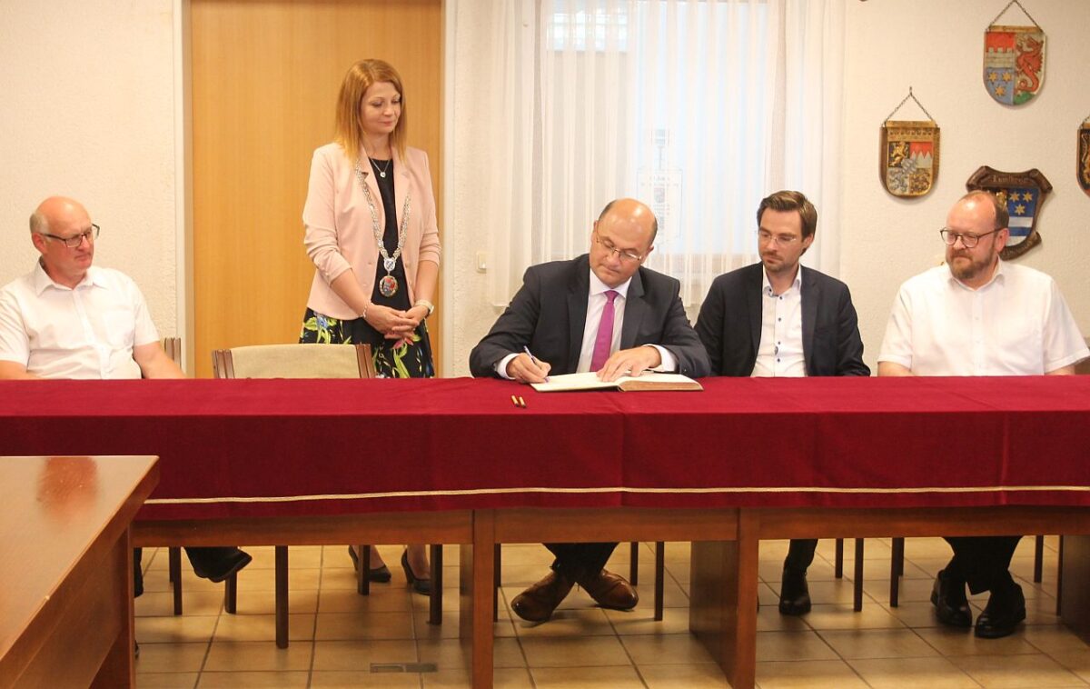Zunächst freute sich der Gast aus München über den musikalischen Empfang am Rathaus durch die Blaskapelle Waldkirch. „In der Natur leben und per Homeoffice arbeiten, ist bei uns aktuell schon möglich“, sagt Marina Hirnet und ergänzt: „Aber um mit der Entwicklung Schritt halten zu können, wird der Breitbandausbau in den nächsten Jahren in unserer Flächengemeinde eine große Aufgabe sein und bleiben.“