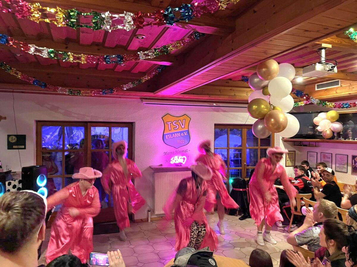 Das absolute Highlight des Abends erforderte Mut und ordentlich Rhythmusgefühl: Elf gestandene Fußballer der ersten und zweiten Mannschaft sowie der Jugend tauschten Stollen gegen Tanzschuhe. Als legendäre „PussyCatSchwalls“ in knallpinken Outfits bewiesen die durchtrainierten Jungs mit Unterstützung von fünf TSV-Tanz-Mädels, dass sie nicht nur am Ball, sondern auch beim Hüftschwung flink sind.