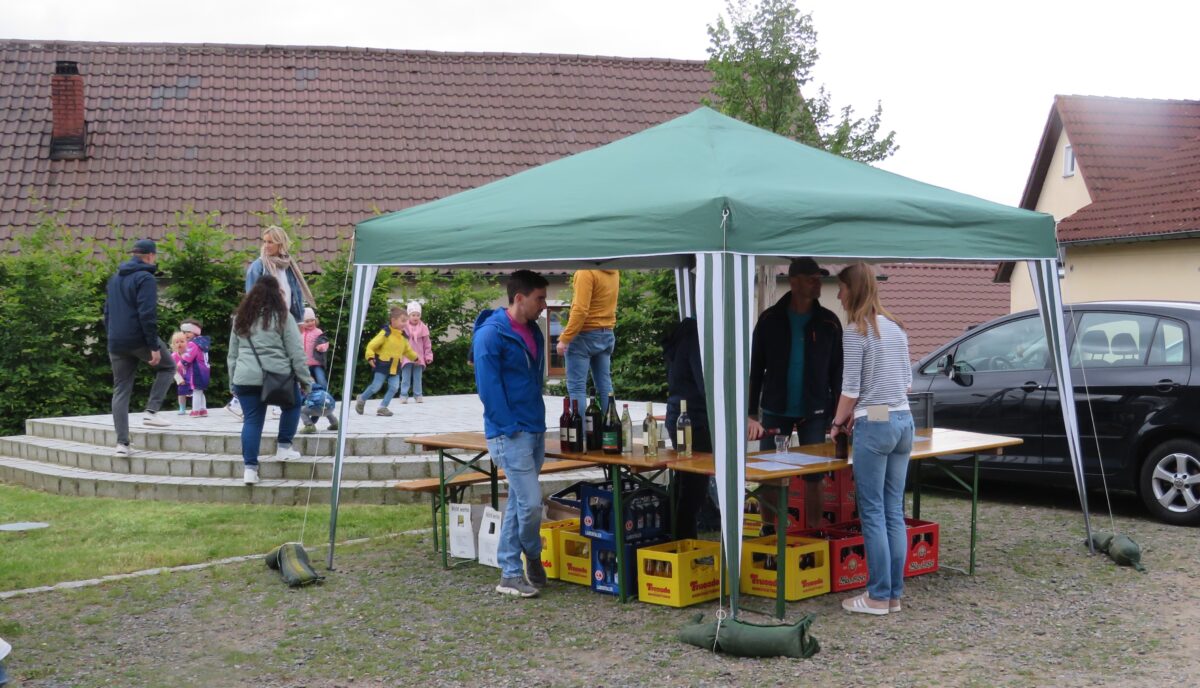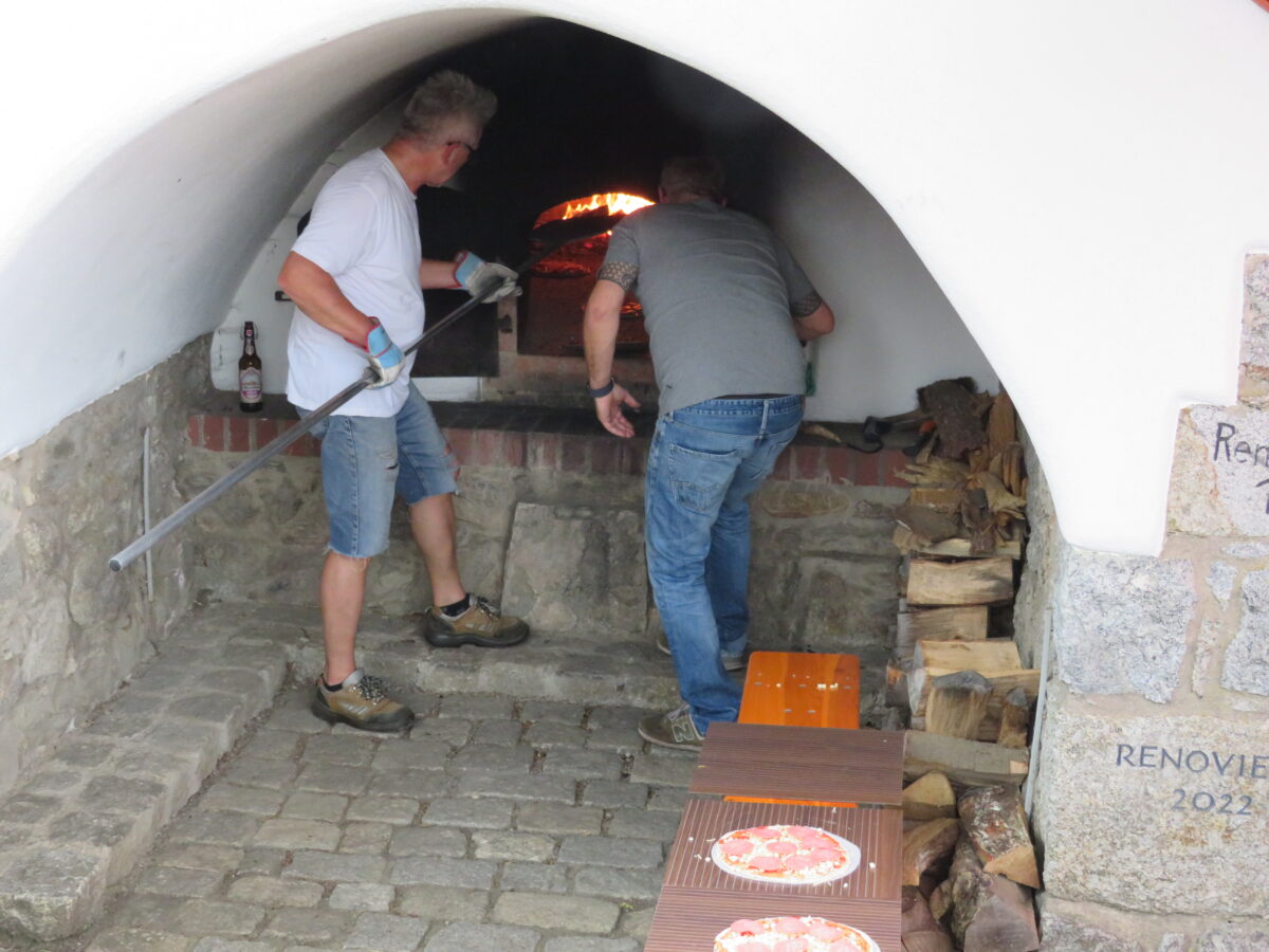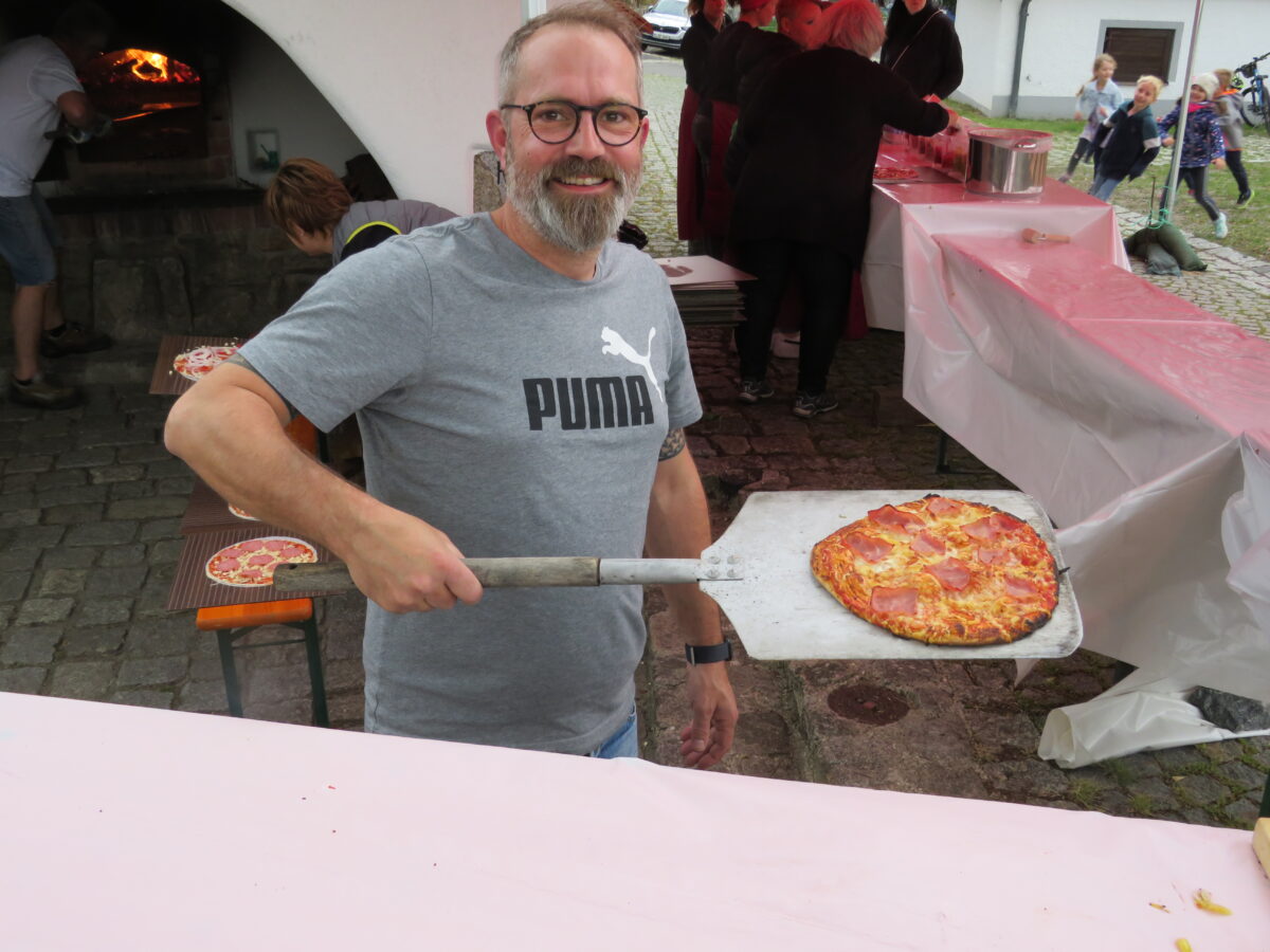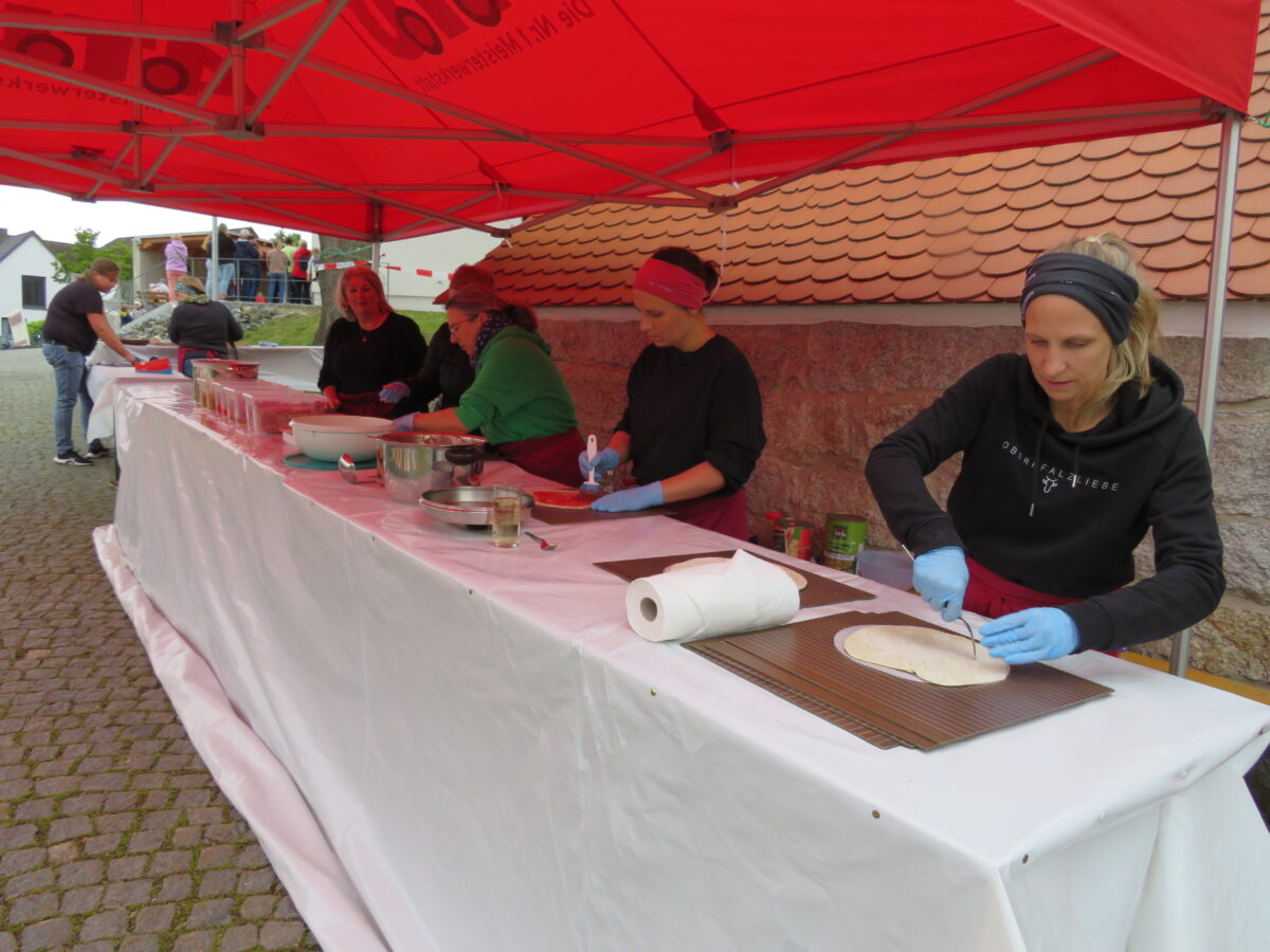 Vor dem eigentlichen Start des Festes stellten die Mitglieder noch schnell ein Zelt als Schutz auf. Die Plätze im Zelt und rund um die Kulturscheune füllten sich schnell. Ab 17 Uhr schürten die Mitglieder der Freien Wähler den Backofen in Störnstein an.