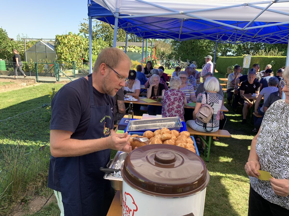 Gemeinsam mit den engagierten Kleingärtnern wurden die festlichen Stunden verbracht. Ein schützendes Zelt bot dabei willkommene Abkühlung vor der strahlenden Sonne. Der Vorsitzende des Vereins, Siegmar Behr, strahlte vor Freude über den regen Andrang.