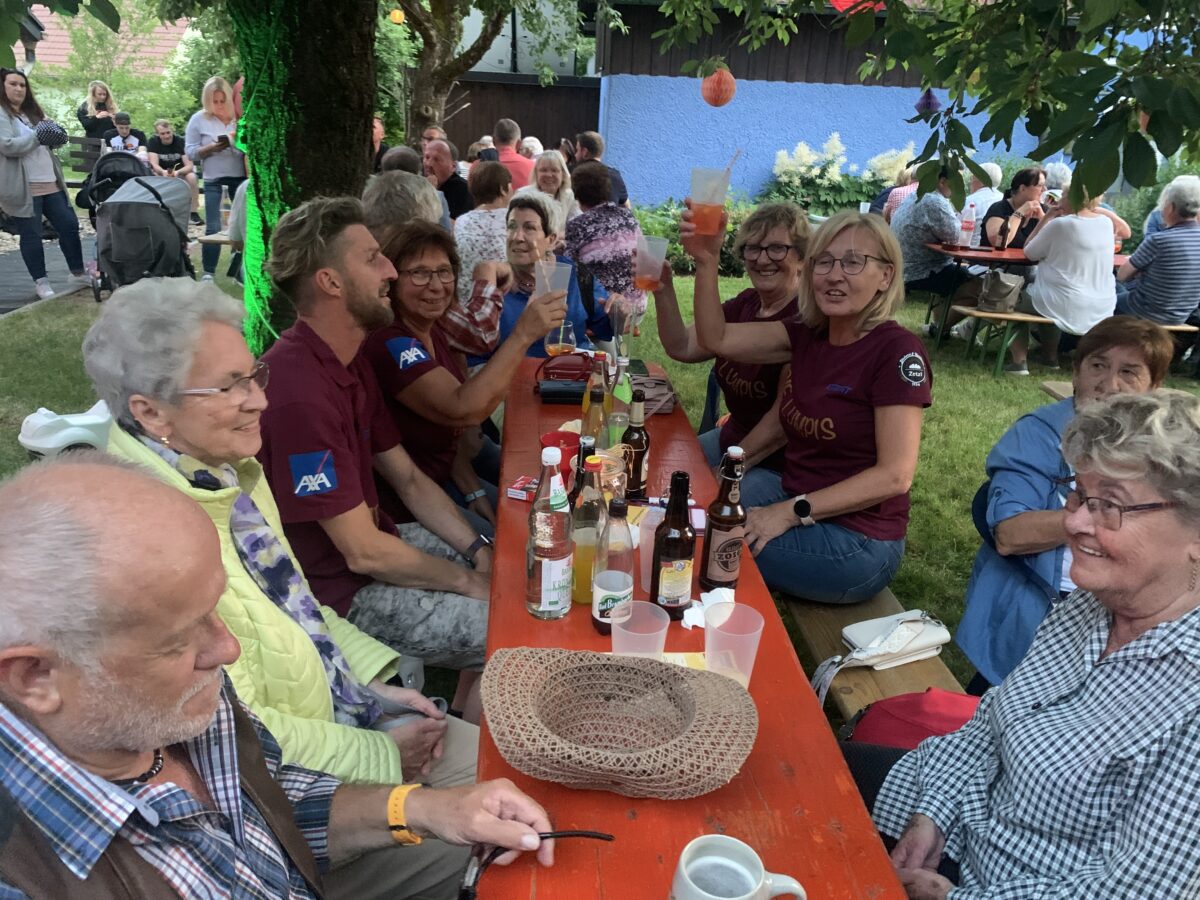 So auch beim Frauenbund in der Pfarrgasse. Im idyllischen Garten unter dem großen Kirschbaum sorgte die Party- und Showband „Lumpis“ für Stimmung. Bei Schlagern über Countrymusik bis hin zu Rock war es kein Wunder, dass die Tanzfläche ständig belegt war. Selbst die Band hatte soviel Spaß daran, dass aus einem geplanten zweistündigen Auftritt ein vierstündiges Konzert wurde. Trotz weiterer Zugaben-Rufe musste aber dann um Mitternacht dennoch Schluss sein.