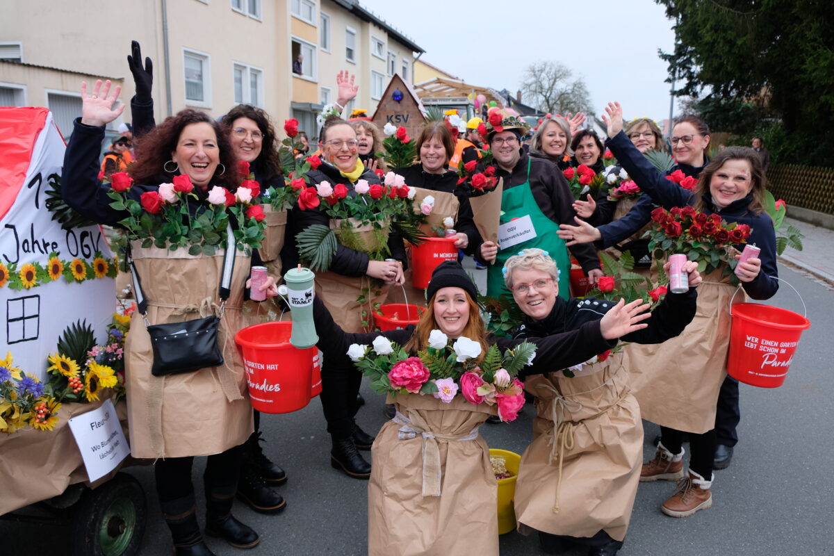 Der Eschenbacher Faschingszug hat eine lange Tradition und findet alle zwei Jahre statt. Beim Gaudiwurm 2024 ließ der Obst- und Gartenbauverein Rosen regnen.