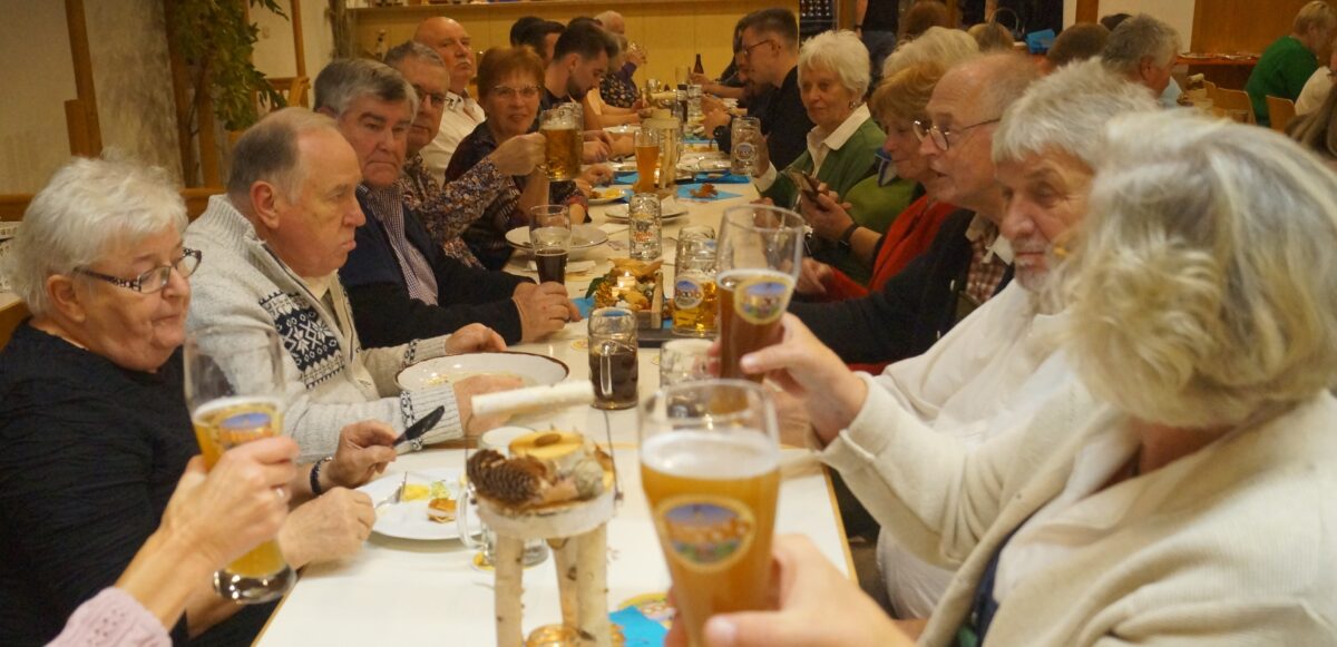 Die Musiker passten die Lautstärke an die Akustik des Dorfheims an, sodass sich die Gäste gut und fröhlich unterhielten. Der Abend zog sich weiter in die Länge.