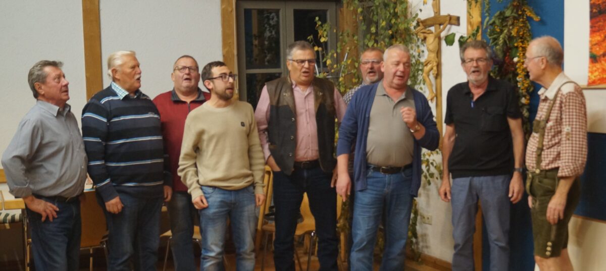 Eine Abordnung des Männergesangvereins Gemütlichkeit Weihern mit ihrem Vorstand Josef Zimmermann gratulierte dem Geschäftsführer des Bezirkes Oberpfalz Peter Ertl mit dem Lied “Zum Geburtstag viel Glück”. Peter Ertl spendierte den Sängern einen Geburtstagsschnaps. Zudem dirigierte das Geburtstagskind einen bayerischen Marsch.