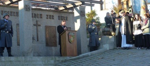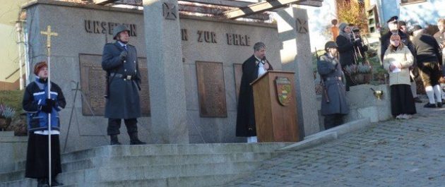 Leuchtenberg/Döllnitz. „Fast genau auf den heutigen Tag war der erste Weltkrieg zu Ende“, so Bürgermeister Anton Kappl bei seinen Ansprachen an den Kriegergedächtnisstätten in Döllnitz und Leuchtenberg. Als trauriges Jubiläum bezeichnete er diesen Tag, aber er war stark mit Hoffnung für Frieden und Freiheit verbunden. Es wurde die Demokratie eingeführt und Bayern zum Freistaat ausgerufen.