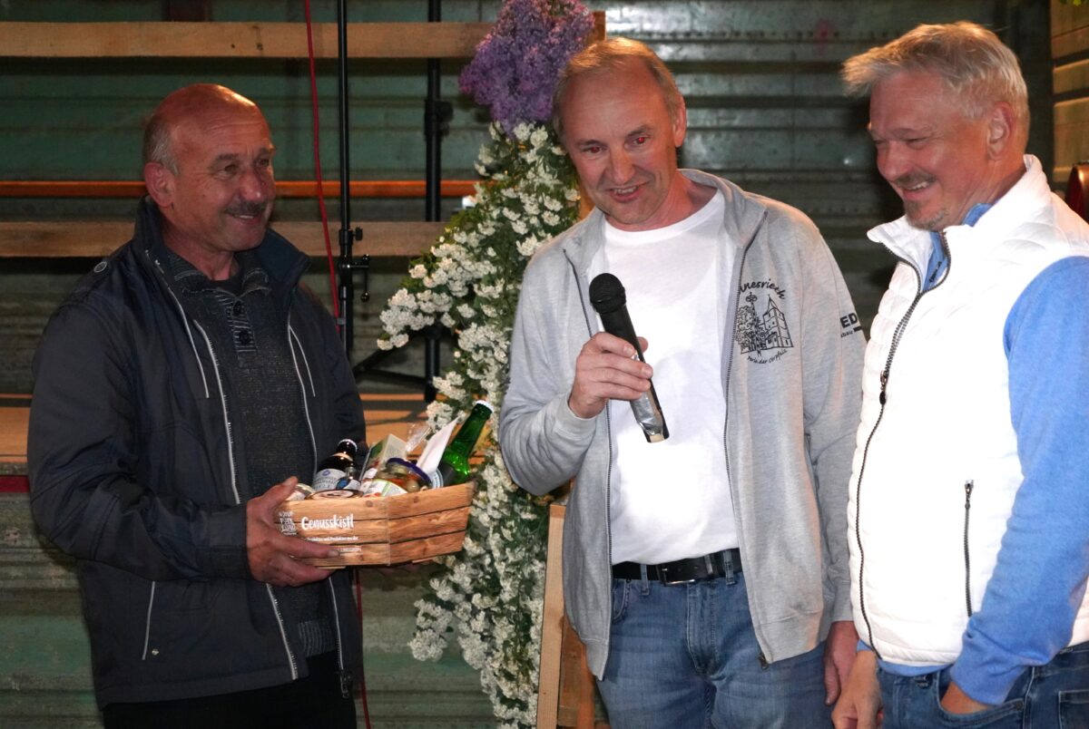 Im Anschluss daran folgte, nur einen Steinwurf entfernt, im Lennesriether Veidnstodl der weltliche Teil: die Sitzweil. Hierbei führte Hans-Peter Reil, der charmant und mit viel Lokalkolorit „garantiert konzeptfrei und spontan“, aber sehr unterhaltsam durch das Programm. Dorfsprecher Georg Bocka hieß unter den Gästen neben Pfarrer Norbert Götz auch das Waldthurner Bürgermeister – Dreigestirn Josef Beimler, Roman Bauer und 3. Bürgermeister und Moderator Hans-Peter Reil willkommen.