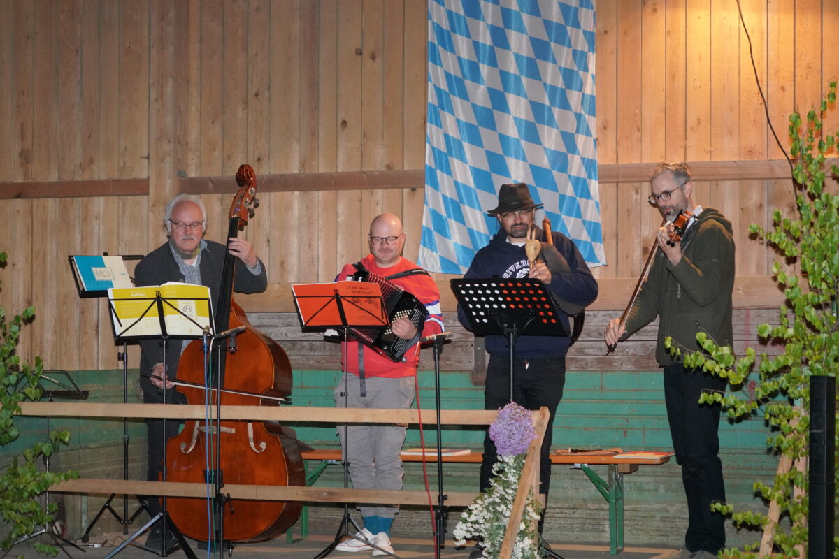 Weiter ging’s mit den Eisbergmusikanten aus dem Moosbacher Raum, die mit Knopfharmonika, Schifferklavier, Kontrabass und Gitarre so manchen Bayerischen spielten und manchmal „Barfuß durch die Welt“ gehen, wobei sie an diesem Tag Schuhe anhatten.