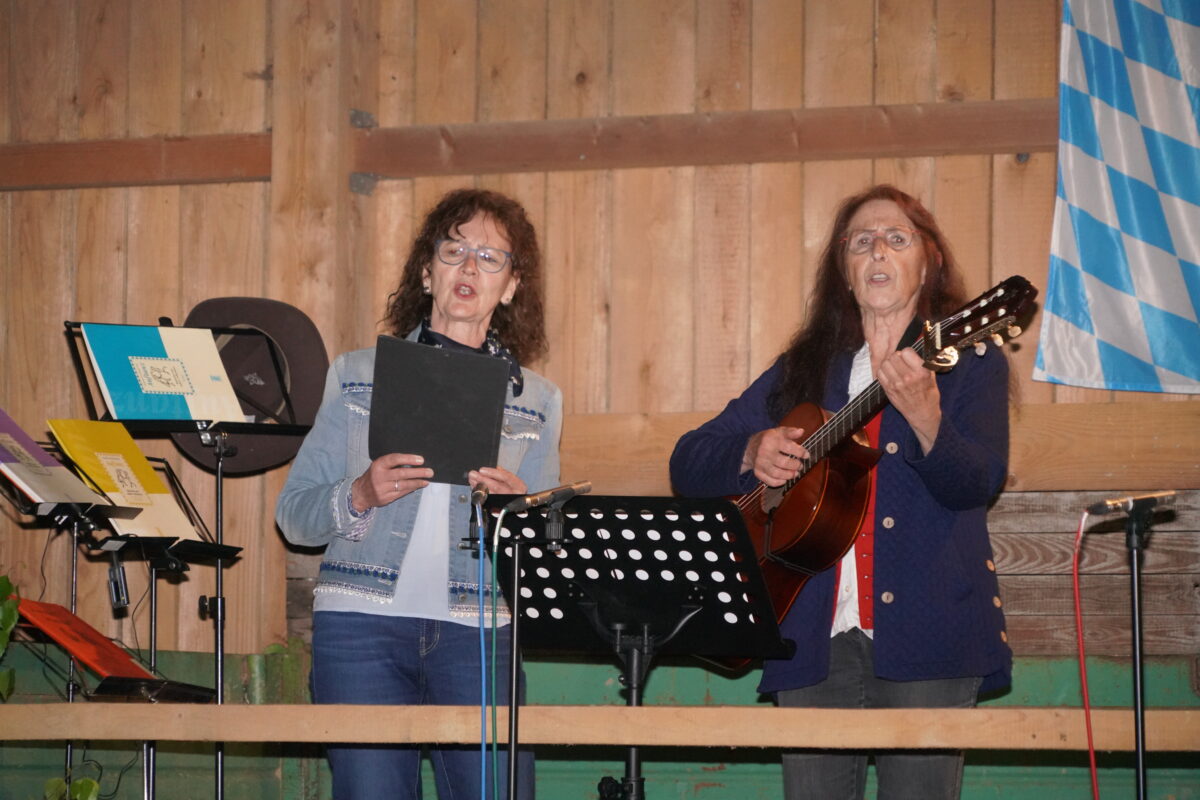Das Gesangsduo Monika Kunz und Inge Härtl aus dem Bereich Konnersreuth und Bad Neualbenreuth brachten sehr lustige und eigenwillige Lieder aus ihrer Region zu Gehör – den Leuten hatte es unheimlich gefallen. So sangen sie vom Bärnauer Bockl oder ließen lustig eine Oma mit Sehbehinderung hüpfen. Als dann die Glocken zum Abendgebet einluden, trug das Duo den Engel des Herrn vor.