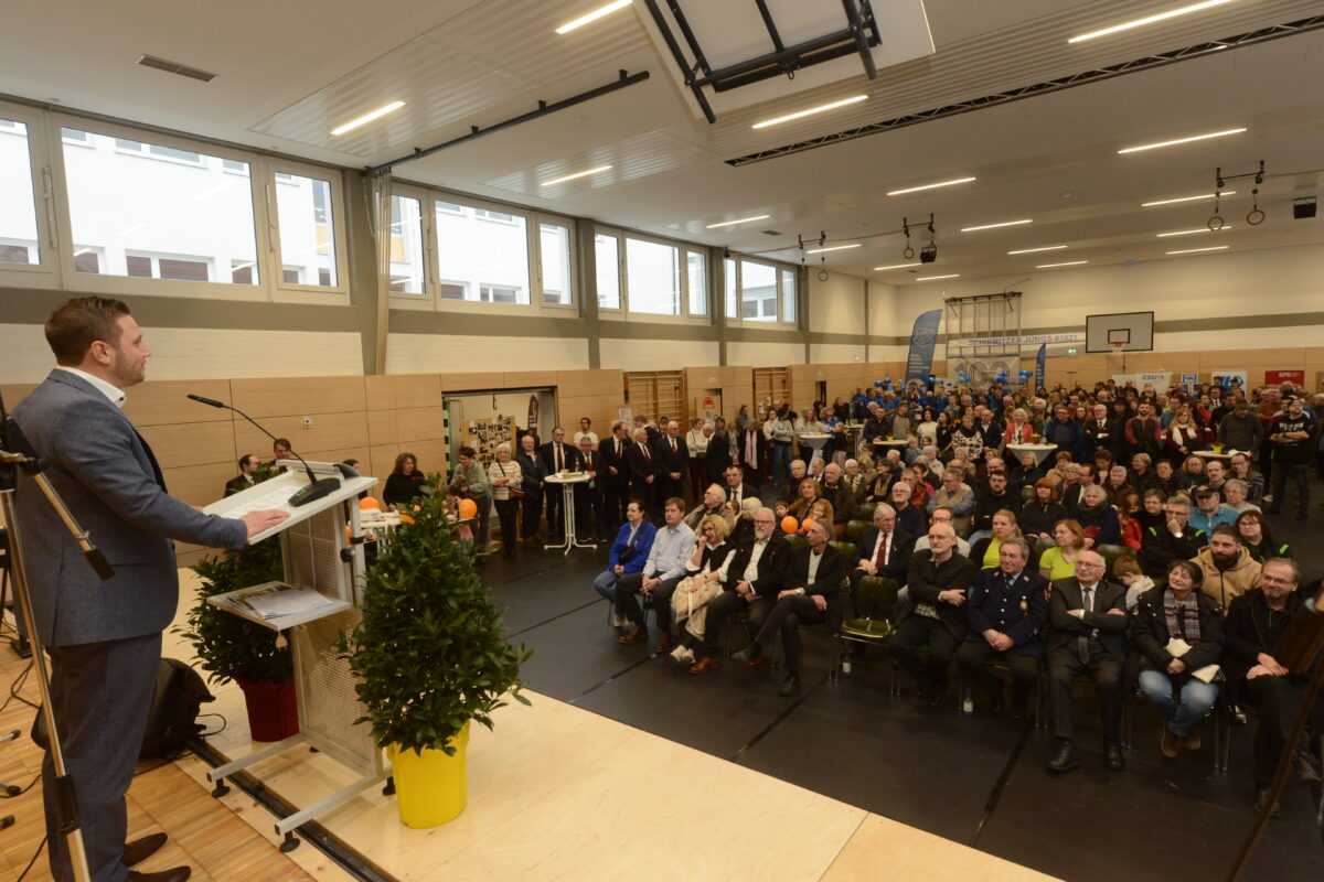 Um dieses breit gefächerte Angebot anbieten zu können und zugleich den Anforderungen aller Nutzer der Halle gerecht zu werden, sei der Weg dieser Generalsanierung alles andere als einfach gewesen, betonte Bürgermeister Ernst Lenk. Unterm Strich seien bei der Generalsanierung nur die Grundmauern erhalten worden. Alles andere, vom Dach bis zum Keller, ist neu. Zudem hat der eigens angeschaffte Schutzboden seine Notwendigkeit gezeigt und die Premiere mit „sehr gut“ bestanden – angesichts des großen Besucheransturms dieser Einweihungsfeier sowie kommender Veranstaltungen.