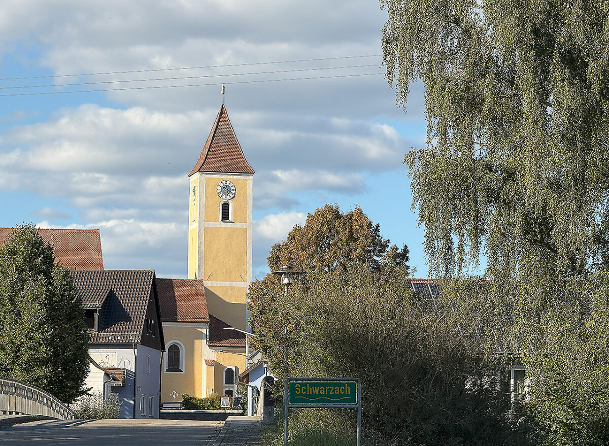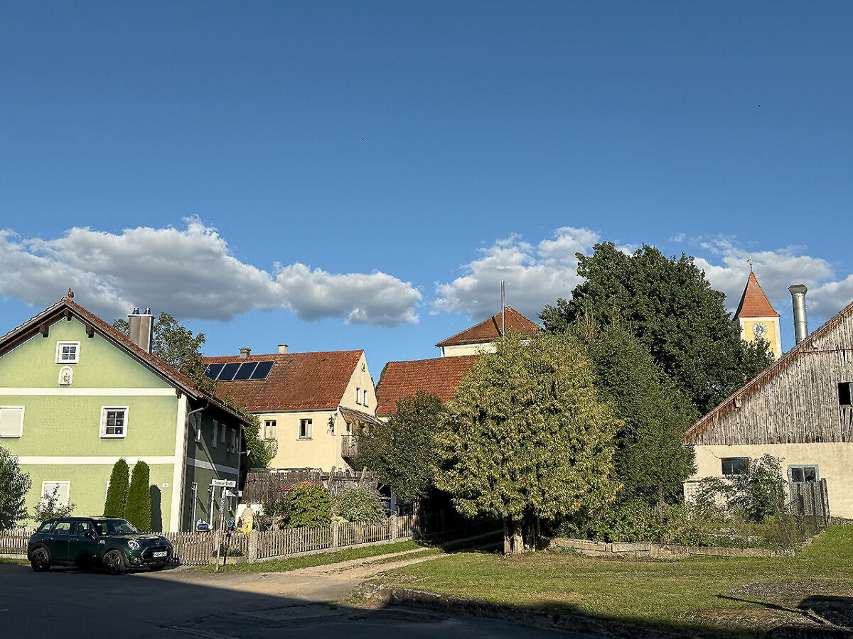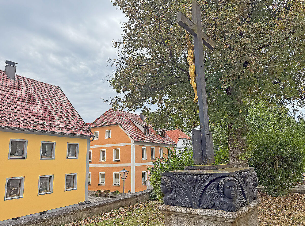 Die Schwarzach begleitet uns mäandernd wie eine störrische Freundin: mal links, mal rechts, mal spurlos verschwunden. In Altendorf erhebt sich die Kirche St. Andreas auf einer kleinen Anhöhe, flankiert von ihrem barocken Langhaus – eine stille Majestät aus dem 14. Jahrhundert. Daneben das Alte Schloss, dreigeschossig, mit Treppenturm und Sprenggiebel – Zeuge einer Zeit, als hier noch Freiherren und Freisinnige Hof hielten. Der Weg hinauf zum Kalvarienberg lohnt die Schweißperlen: Vierzehn Granitpfeiler mit Gipsreliefs, Kreuzwegstationen aus dem 19. Jahrhundert, die vom Fleiß der Dorfbildhauer erzählen. Oben steht die Kreuzigungsgruppe im Wind, flankiert von zwei kleineren Kreuzen, rostig und erhaben.