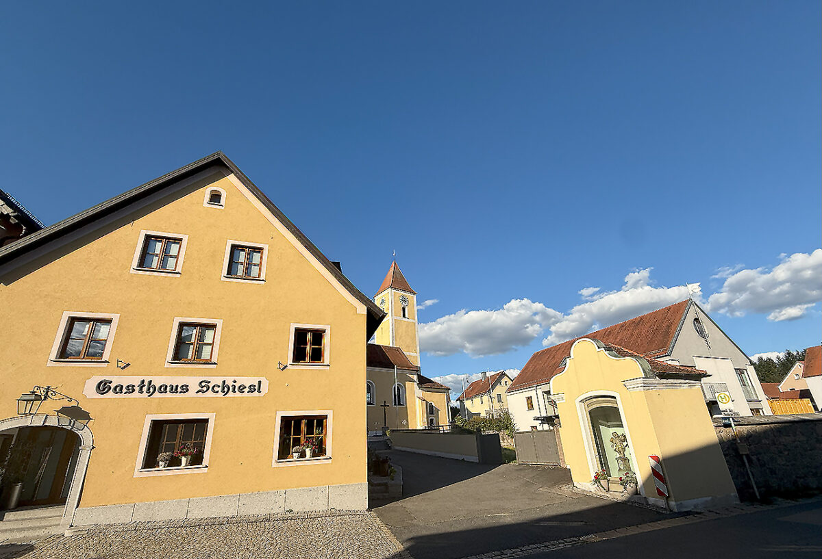 Dann taucht Pertolzhofen auf – ein Dorf wie ein Fußnotenverzeichnis des Mittelalters. Seit 1150 steht hier die romanische Kirche Maria Immaculata, einst Wallfahrtsziel für Kranke aus Bayern und Böhmen. Heute ruhiger, aber nicht vergessen. Am Radweg: die mobile Kunsthalle – ein Container mit Herz, durch dessen Fenster man rund um die Uhr Kunst sieht. Maria Immaculata auf einer Leinwand aus Nebel und Wellblech. Schade nur, dass der Gasthof nur noch ein trauriger Schatten besserer Zeiten ist – die Stodlwirtschaft tut als Radler-Bahnhof sein Bestes, um durstige und hungrige Strampler zumindest am Wochenende zu versorgen.