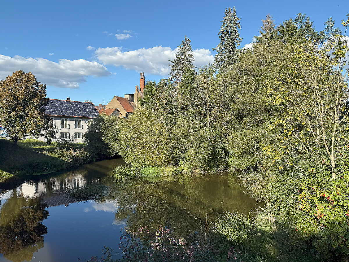 Im Stadtmuseum im Zehentstadl stapfen wir durch Oberpfälzer Tierwelt und Aktenzauber, am Schmidt-Haus, dem ehemaligen Söldnerhaus oder Leonardihaus, prangen die Sgraffitomalereien von Karl Schmidt, am Storchenbiotop östlich der Autobahn schimmern die Wiesen wie nasse Seide. Wer den Blick hebt, sieht am Nordrand das Pflegschloss (heute Vermessungsamt) – Verwaltungsromantik in Naturstein. Und unten an der Naab beginnt schon der leise Takt der Route: Der Radweg zieht wie ein Faden, der die Kapitel verknüpft.