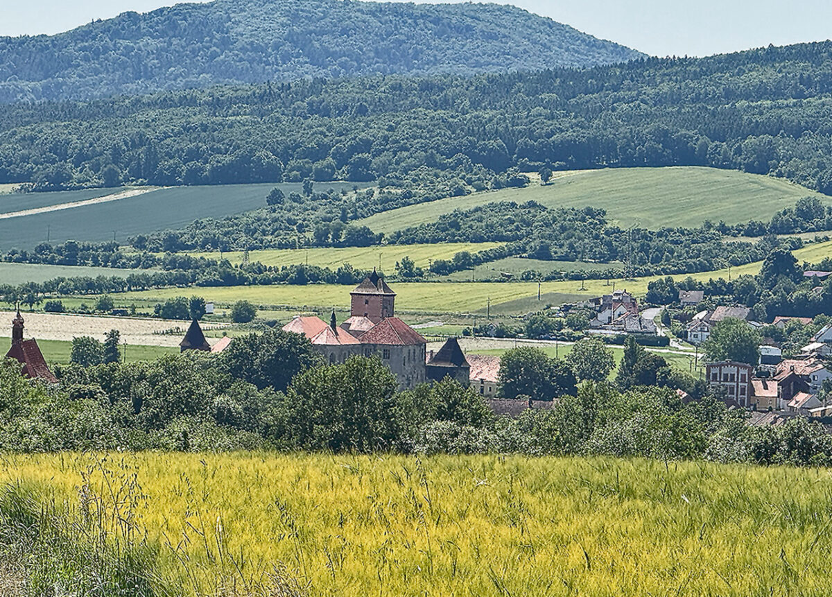 Gut 15 km nordwestlich wartet ein Höhepunkt für Ritterfreunde: die Wasserburg Švihov, Drehort des tschechischen Märchenfilms „Drei Haselnüsse für Aschenbrödel“. Eine der besterhaltenen Renaissanceanlagen Böhmens – und mit ihrer Lage zwischen Wassergräben ein magischer Ort.