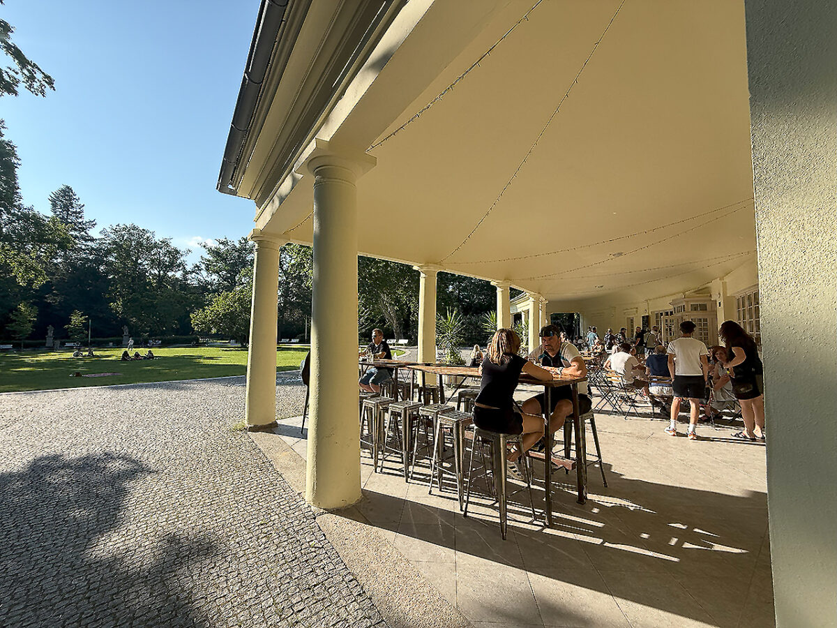 Genussradeln rund um Klatovy: Kolonnaden-Café im Park von Klatovy. Foto: Jürgen Herda