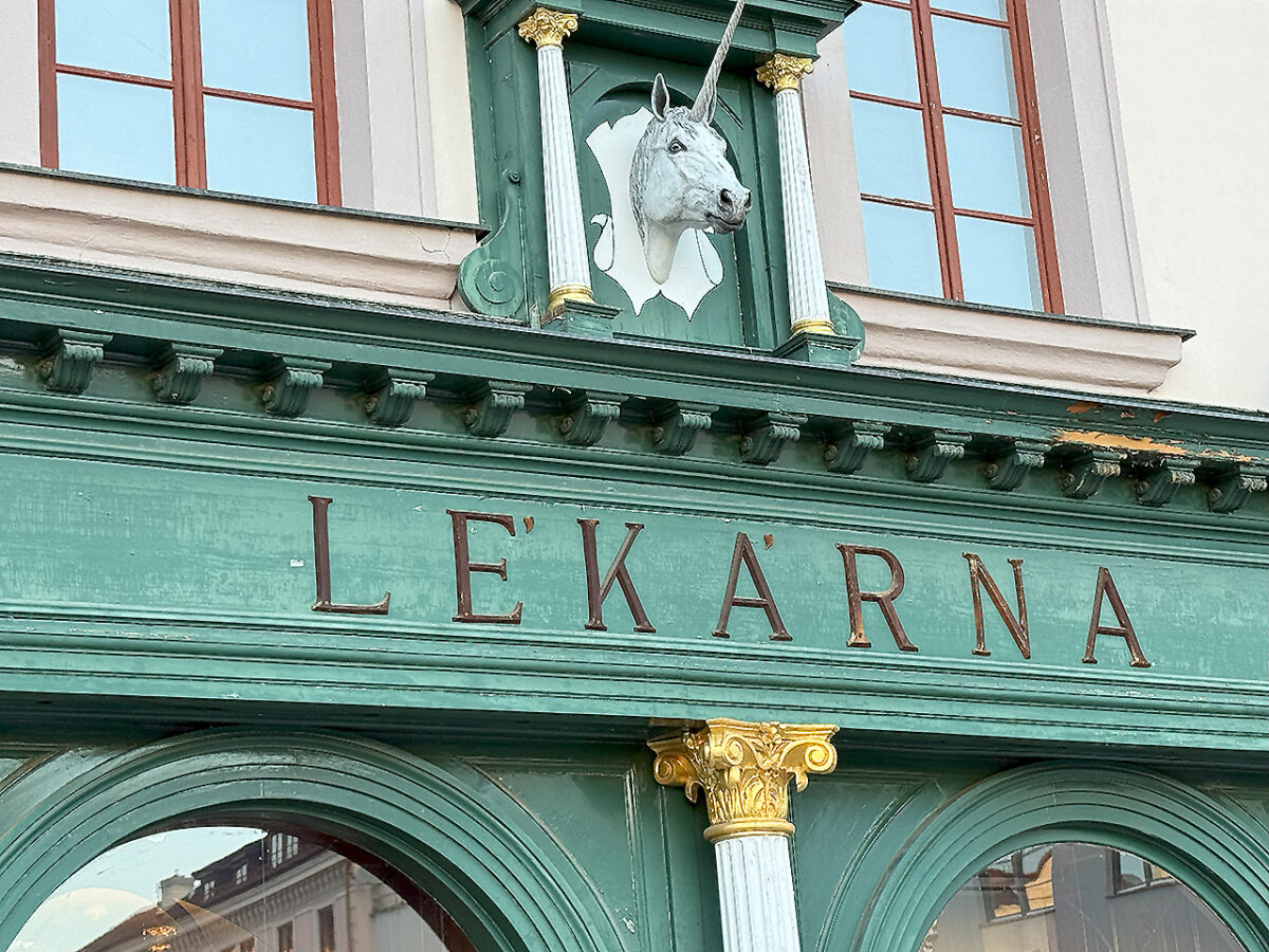 Genussradeln rund um Klatovy: Einhorn-Apotheke in Klatovy, Tor zum Böhmerwald. Foto: Jürgen Herda
