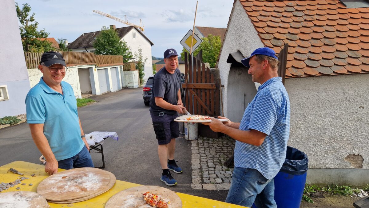 Bereits am Tag davor mußte der „OWV-Backofen“ eingeheizt werden, um ihn für das Pizzabacken auf Temperatur zu bringen. Rund fünfzig Kinder ließen sich die Gelegenheit nicht entgehen, bei herrlichem Spätsommerwetter den Teig auszurollen und ihre Pizza im Hof von Rudi Braun selbst zu belegen. Salami, Schinken, Käse, Pilze, Thunfisch, Ananas oder zur Verfeinerung Zwiebeln und Paprika, aus allem konnte ausgewählt werden um seinen Gaumen zu befriedigen.