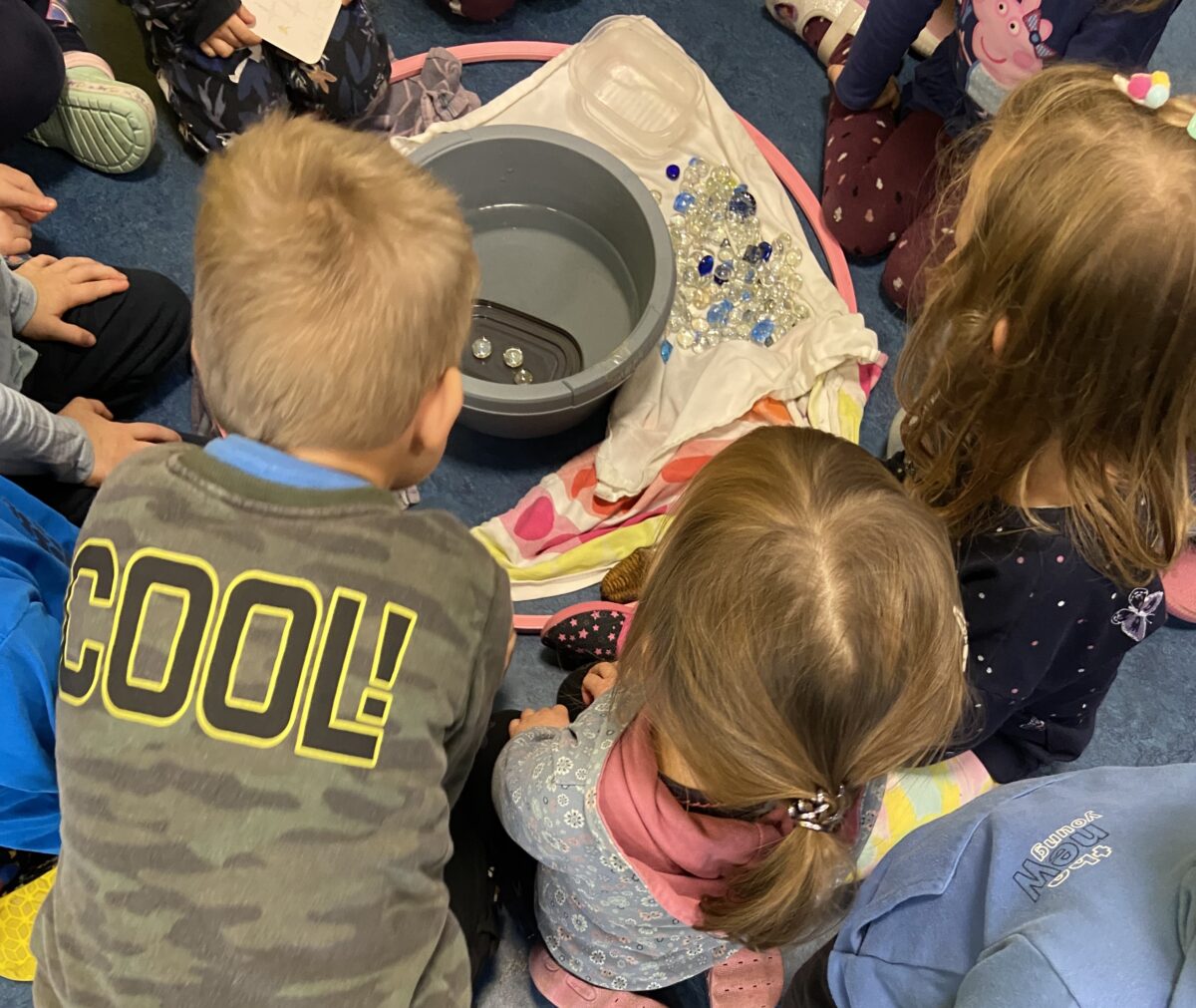 Thema der regelmäßigen Besuchsreihe war nämlich die Welt der Steine, Mineralien und Fossilien. Die Naturpark-Rangerin erklärte den aufmerksam lauschenden Kindern den Aufbau, die Herkunft und Fundorte der teilweise Jahrmillionen alten “Erdbewohner” und erzählte die Geschichte vom “Mutstein”. Nachdem man einige Steine und Mineralien unter Lupe ganz genau betrachtet hatte, durfte sich jedes Kind einen besonderen Stein aussuchen und erzählen, warum ihm ausgerechnet dieser Stein so gut gefällt.