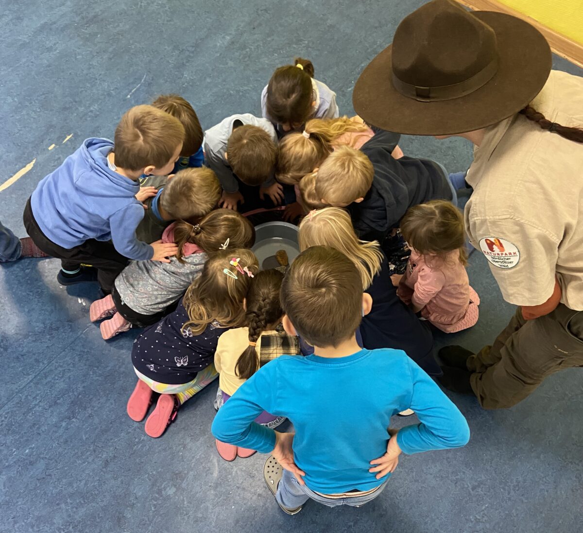 Vor wenigen Tagen war es wieder so weit: Die Kleinen des Kinderhauses Heilig Geist hatten einen ganz besonderen Besuch, auf den sie sich stets ungemein freuen. Michaela Griener, Rangerin des Naturparks Nördlicher Oberpfälzer Wald, entführte die circa 70 drei bis sechs Jahre alten Mädchen und Buben des Kindergartens in die “Unterwelt” der nördlichen Oberpfalz.