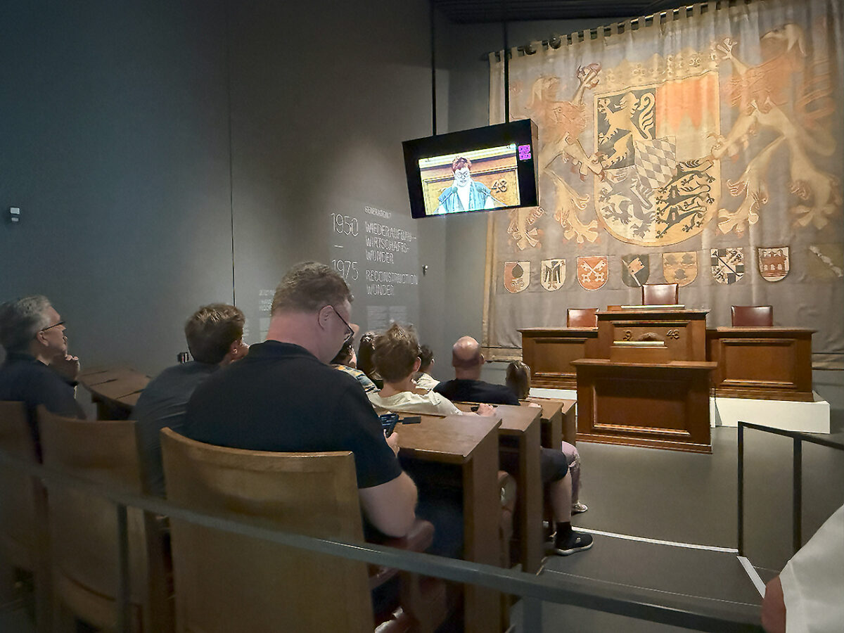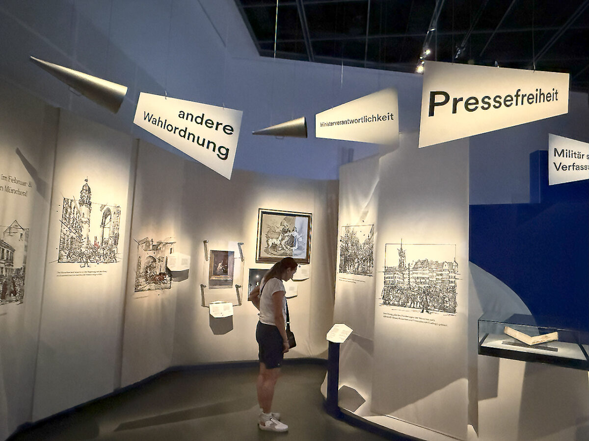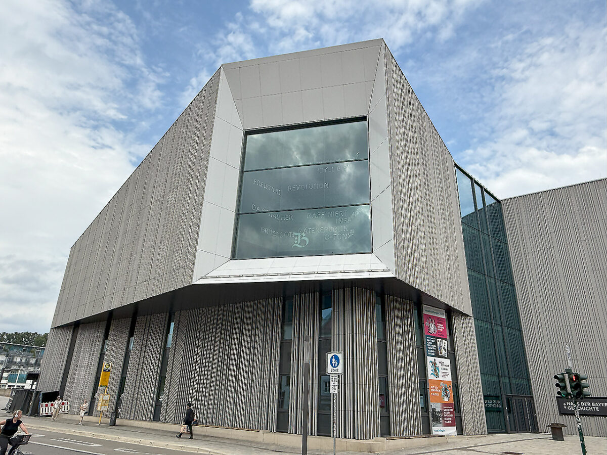 Die Tour beginnt am Donaumarkt, am neuen Landmarkenbau des Museums der Bayerischen Geschichte. Drei Pfosten tragender Spiegelfront öffnen den Blick auf die Donau, das Foyer lädt zum Verweilen ein – auf 2500 m² wird Bayerns Entwicklung vom Königreich 1806 bis heute erzählt.