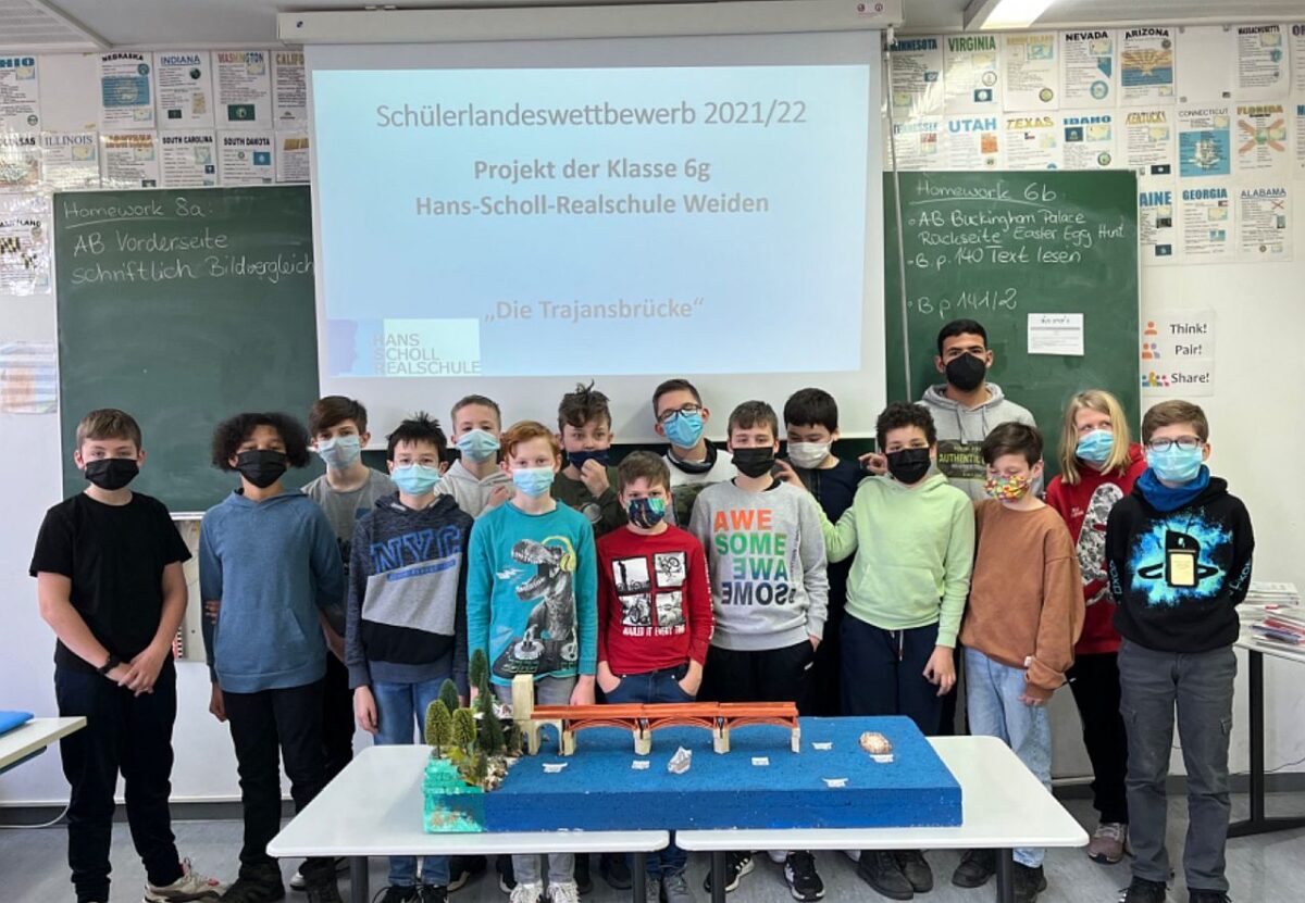 So baute die Klasse 6g im Geschichtsunterricht die römische Trajansbrücke mit dem 3D-Drucker nach und versah das Modell mit QR-Codes. Scannt man diese, erfährt man mehr zu Entstehung, Bauweise und dem Schicksal der Brücke. Als einzige bayerische Realschule gewann die Klasse 6g der Hans-Scholl-Realschule Weiden den ersten Platz in der Altersstufe 2.