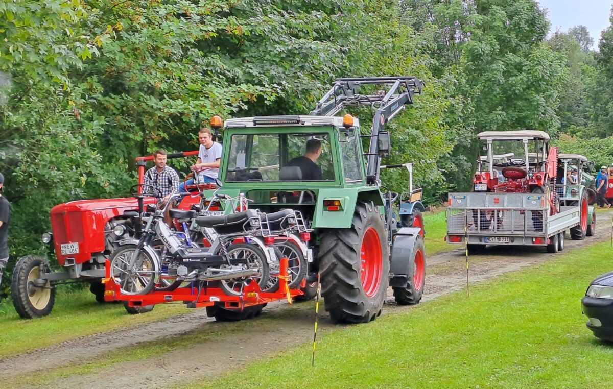 Die Palette der kleineren Zweiräder reichte von Mopeds und Kleinkrafträdern der Fünfziger Jahre wie NSU Quickly oder Kreidler Florett bis zu zwei Sachs-Modellen, die ein findiger Landwirt hinten auf seinem großen Schlepper transportierte. Zu den Motorrädern und Motorrollern kamen noch drei Gespanne mit Zweizylinder-Boxermotor: Eine grüne Original-BMW der Bayerischen Landpolizei, eine graues Ural-Modell im Military-Look und eine chinesische Chang Jiang CJ 750 mit zweisitzigem Seitenwagen.