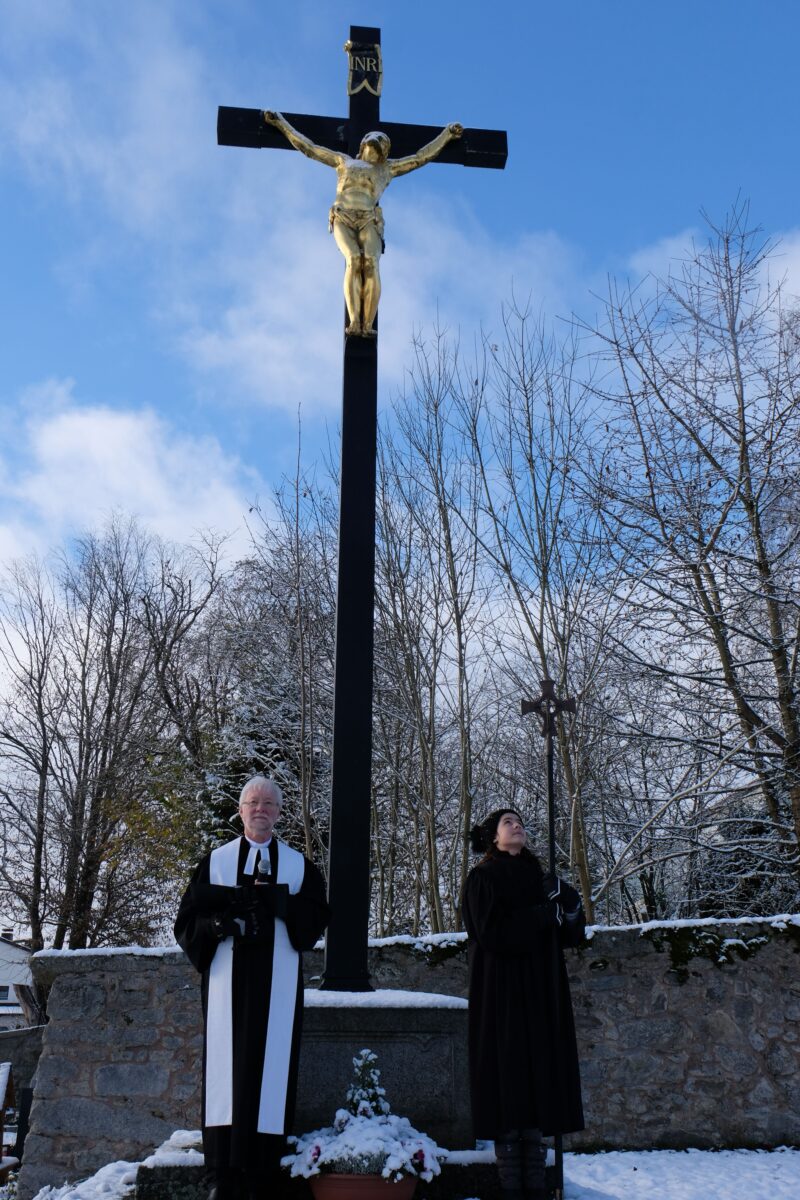 Zu Beginn intonierte der Posaunenchor mit Tanja Riedel „ Ich bete an, die Macht der Liebe”. Am großen Friedhofskreuz betete Pfarrer Wilfried Römischer für die dem Ewigkeitssonntag 2022 bis heute verstorbenen neun Frauen und neun Männer. Den Friedhof bezeichnete Römischer als einen Ort der Versöhnung.