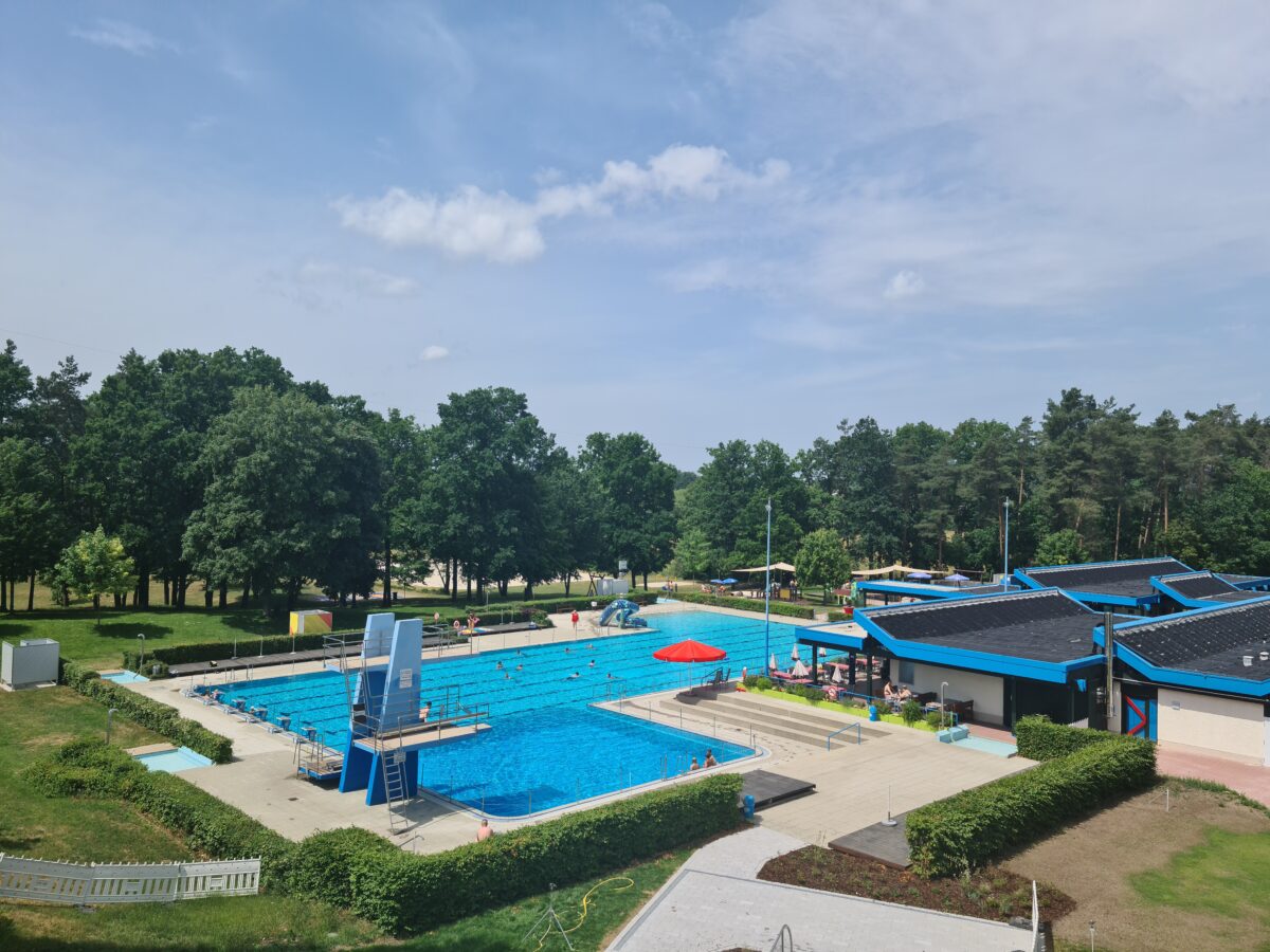 Dadurch wäre aber die beliebte Liegewiese weggefallen und auch die Badeaufsicht sorgte sich um den schlechteren Überblick und die weitere Strecke, sollte doch mal was passieren. Letztendlich fiel so die Wahl auf die Stelle zwischen Springerbecken und Straße. Die wurde kaum genutzt und die natürliche Steigung des Hügels zum Sportpark kann genutzt werden.