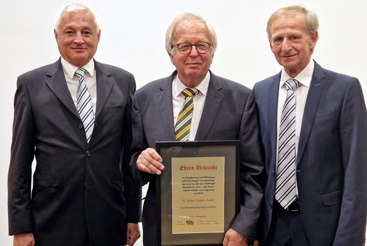 Das Vorstandsgremium des AMC hat entschieden, dass der Stellvertretende Vorsitzende Heinz Adolf zum neuen Ehrenmitglied ernannt wird. Er ist 1969 zum ADAC gekommen und seit 1979 in verschiedenen Ämtern tätig. Er war ab dann auch Sportleiter bis 1986, in den letzten Jahren Zweiter Vorsitzender. Weiter stand er dem Verein in wichtigen Rechtsfragen mit Rat und Tat zu Seite.
