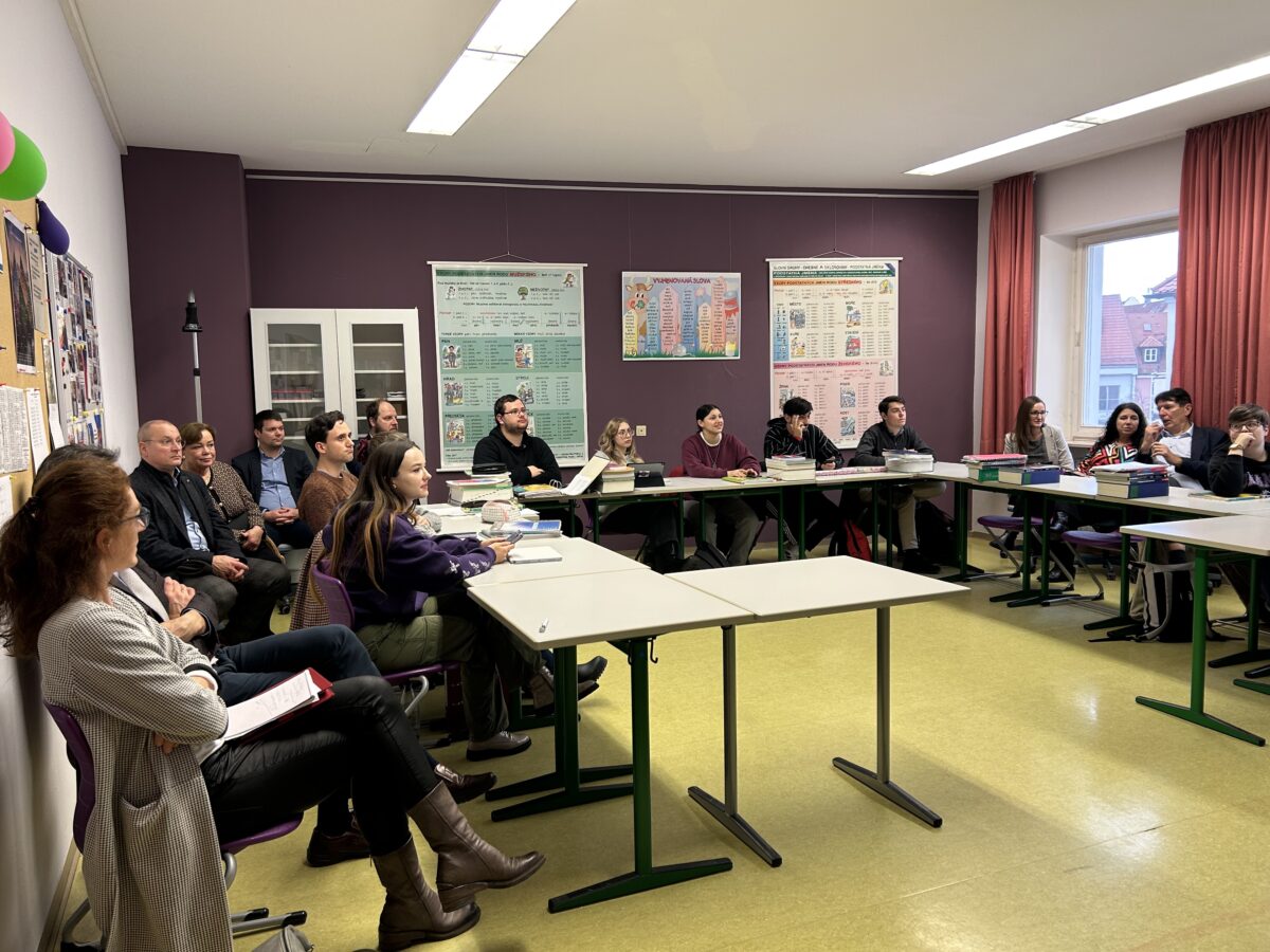 Die Gäste waren auch Teil eines Tschechischunterrichts, der durch ein innovatives Kahoot-Quiz von Tschechischlehrer Dr. Ivan Ramadan und Fremdsprachenassistenzkraft Jan Kij gestaltet wurde. Hier wurde das Wissen über tschechische Grammatik und Landeskunde auf unterhaltsame Weise geprüft.