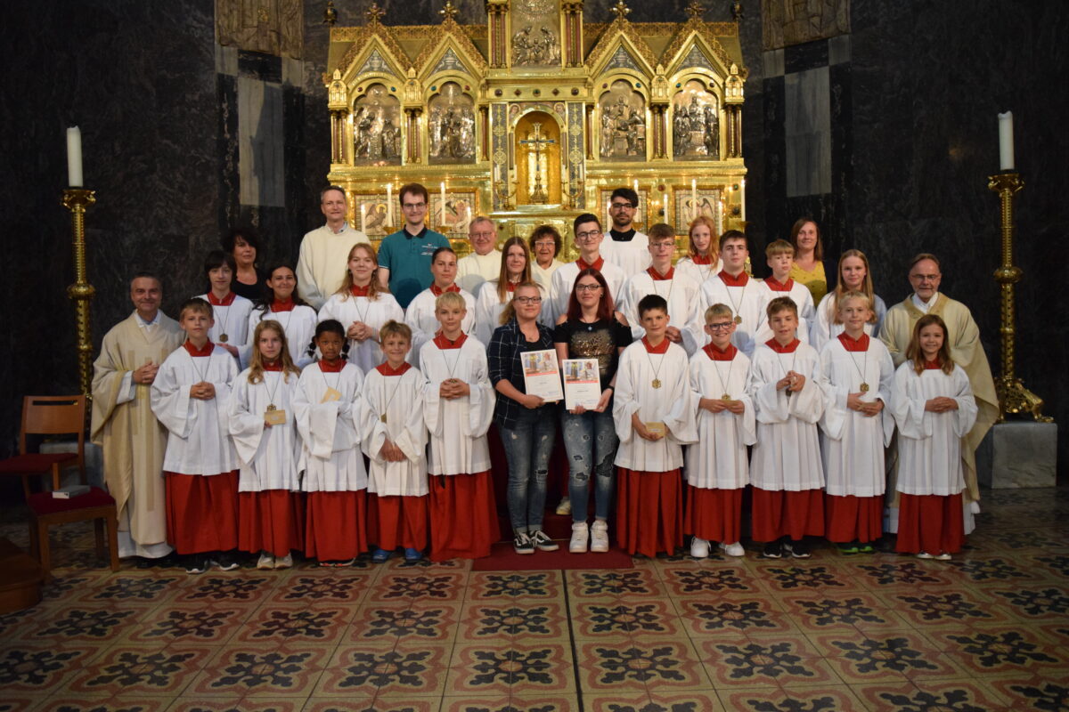 Anlässlich des Sonntagsgottesdienstes wurden in der Stadtparrkirche St. Josef in Weiden insgesamt acht neue Ministranten aufgenommen und zwei langjährige Ministrantinnen verabschiedet.