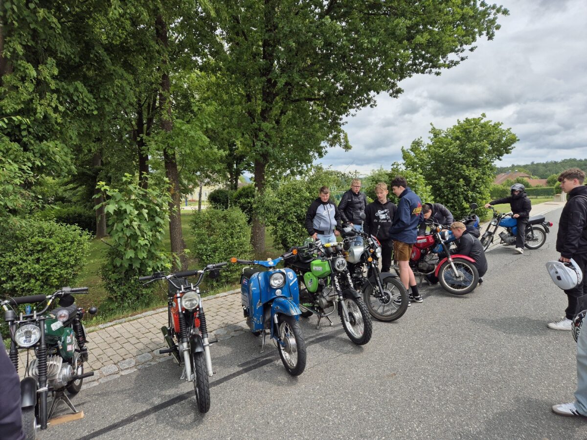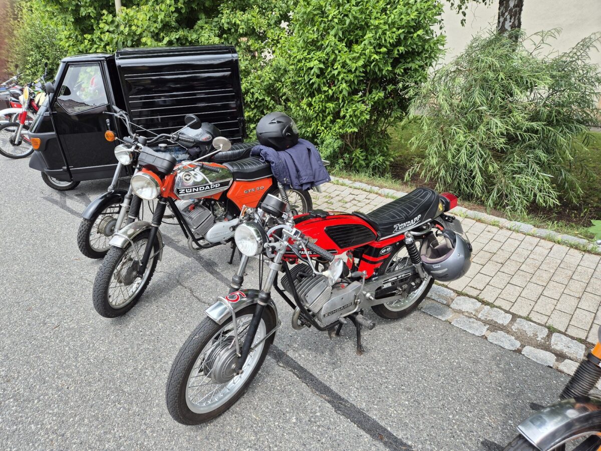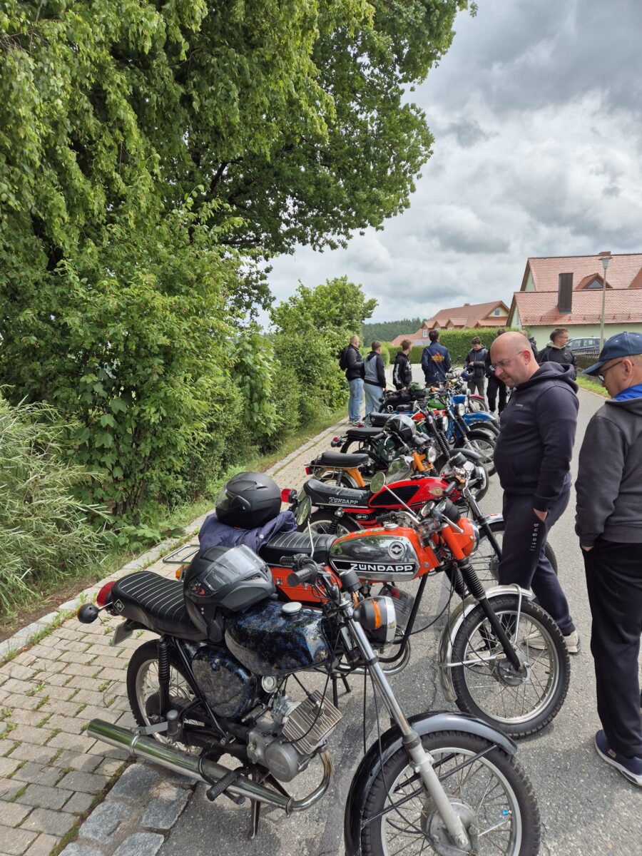 Der Sonntag stand ganz im Zeichen des von Simon Thaller und Luis Wiesnet organisierten ersten Schlammersdorfer 50er-Moped-Treffen. Trotz ständiger Regengüsse stellten rund 50 Liebhaber der guten alten 50er ihre Zweiräder stolz zu Schau. Und die Besucher unterbrachen gerne das Kaffeetrinken, um sich die teils schon sehr alten, aber bestens erhaltenen Mopeds anzuschauen.
