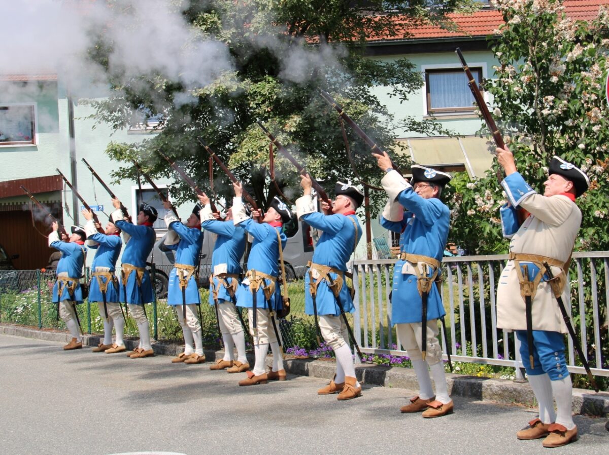 Pünktlich um 14 Uhr gaben die Schützen der Flosser Landwehr mit einem donnernden Salut aus ihren Vorderladern das Startsignal. Rund 2000 Teilnehmer folgten dem Festzug. Angeführt wurde er von Bürgermeister Robert Lindner, Landrat Andreas Meier und zahlreichen Ehrengästen.