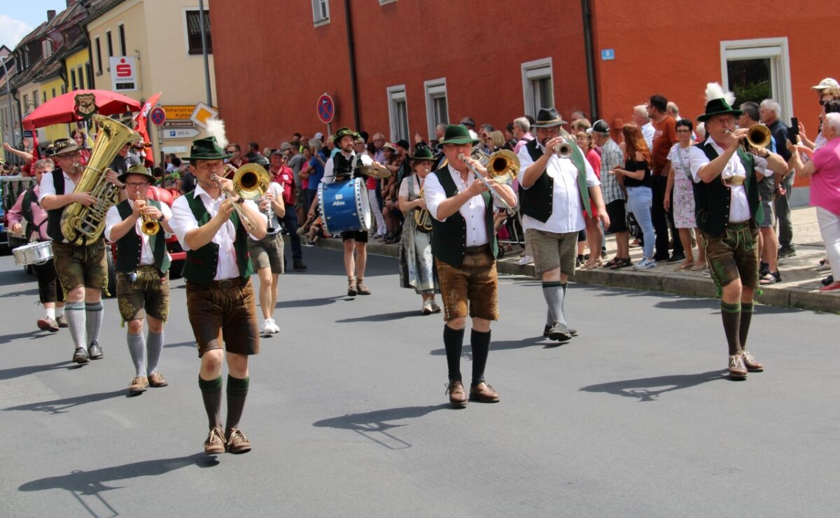 Nach Festgottesdiensten in den beiden Flosser Kirchen und dem Empfang zahlreicher Ehrengäste formierte sich ein Kilometer langer Festzug. „23 Grad und bewölkter Himmel“ blieben der Wunschgedanke von Cheforganisator Oliver Mutterer.