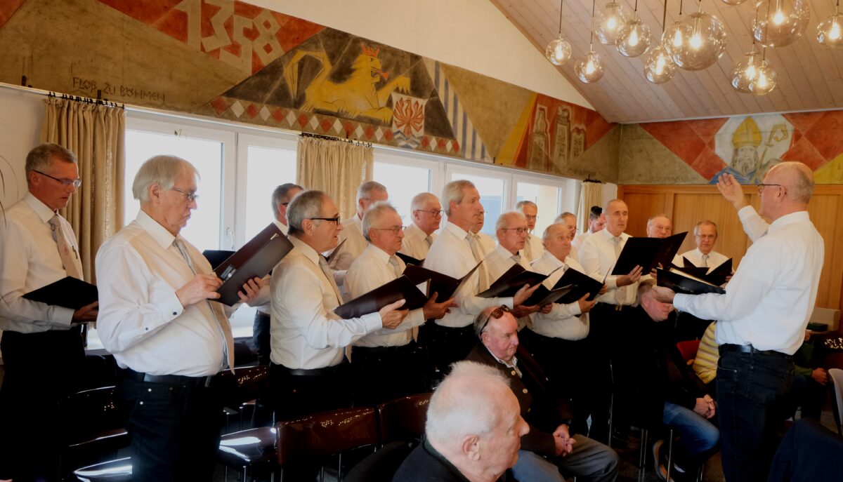Eine besondere Bereicherung des Nachmittags war die Mitwirkung des Männergesangvereins aus der Nachbargemeinde Flossenbürg. Leiter Herbert Kraus hatte sich sofort bereit erklärt, diesen musikalischen Beitrag gerne zu leisten. Dass der gewaltige Männerchor von den Gästen und Besuchern gefeiert wurde, zeigte der jeweils spontane Beifall nach jedem einzelnen Vortrag. Die Überraschung war mit dem Flosser Heimatlied „Mia san die Flossa“ perfekt. Dafür gab es für jeden Sänger ein Präsent aus Franken.