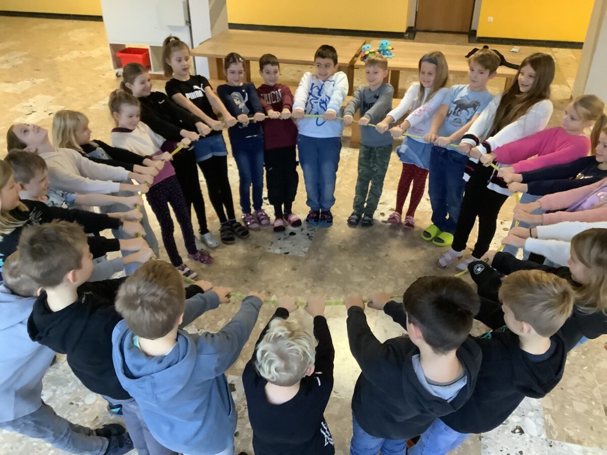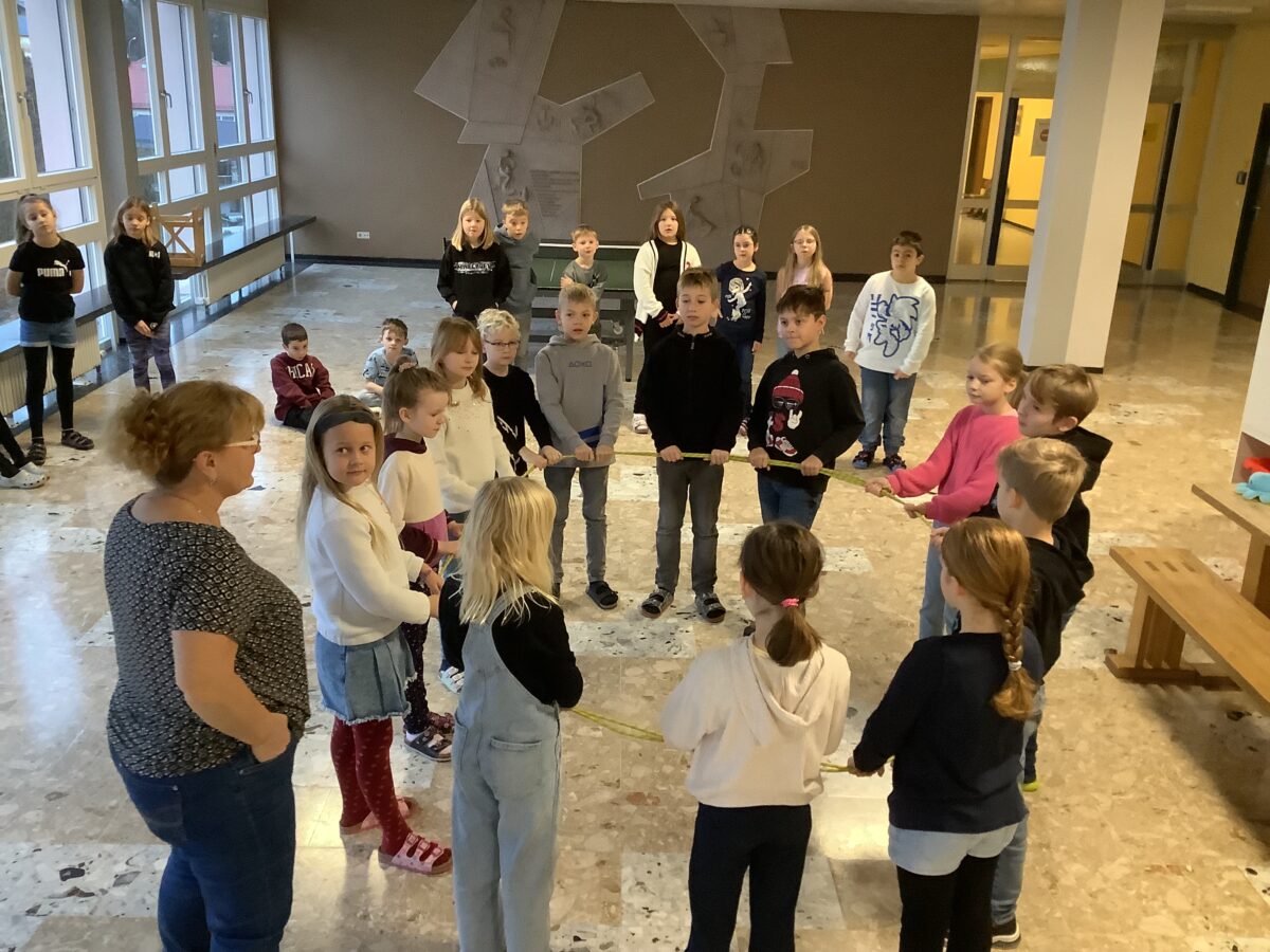 Alle Klassen der Schule nehmen am Programm teil. “Gesundheitsförderin Susanne Seiler und die Klassenlehrkräfte erarbeiten die jeweiligen Bausteine des Programms mit den Kindern.” Im dritten Schuljahr liegt der Schwerpunkt auf dem Umgang miteinander und dem Umgang mit den eigenen Gefühlen. Dabei sind Kommunikation, Kooperation und Vertrauen zentrale Themen. In der aktuellen Einheit lösten die Drittklässler Aufgaben, welche Teamarbeit erforderten. “Die Schülerinnen und Schüler arbeiteten hoch motiviert und konzentriert und hatten viel Freude an den Inhalten und Spielen.”