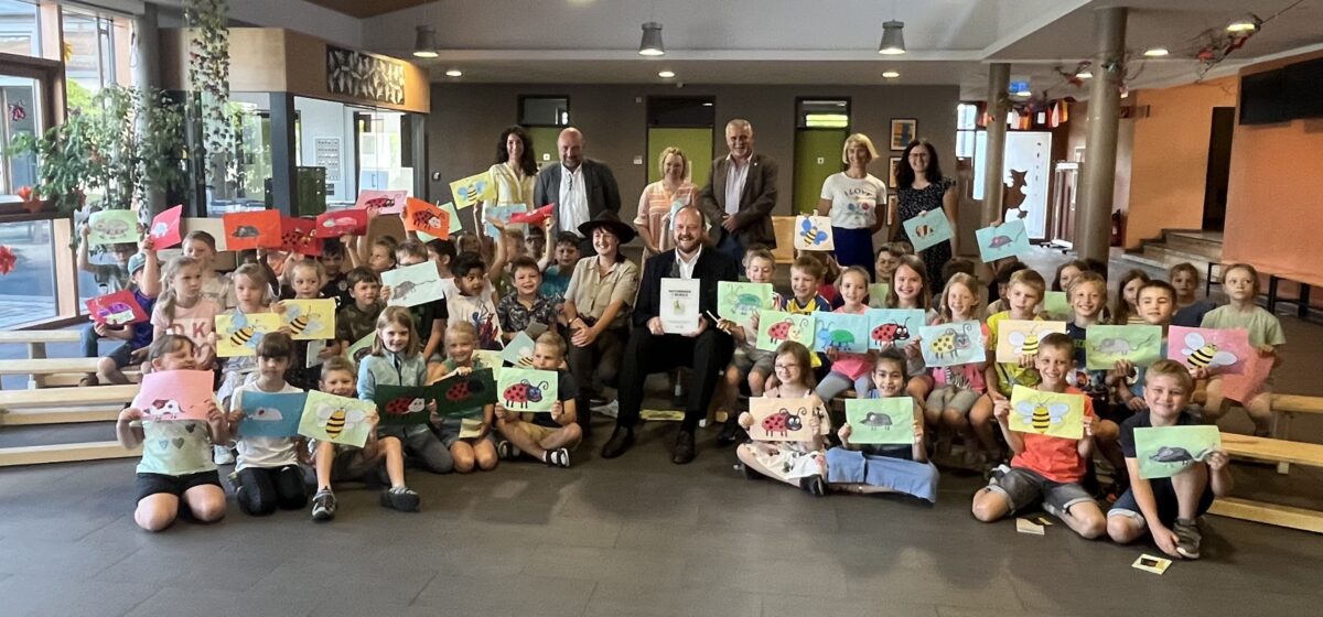 Paul dankte allen Beteiligten für ihren Einsatz und betonte, dass die Grundschule Weiherhammer stolz darauf ist, einen Beitrag zum Erhalt der Natur leisten zu können. Dankbar nahm er die vom Landrat signierte Urkunde und das Schild für den Eingangsbereich der Schule entgegen.