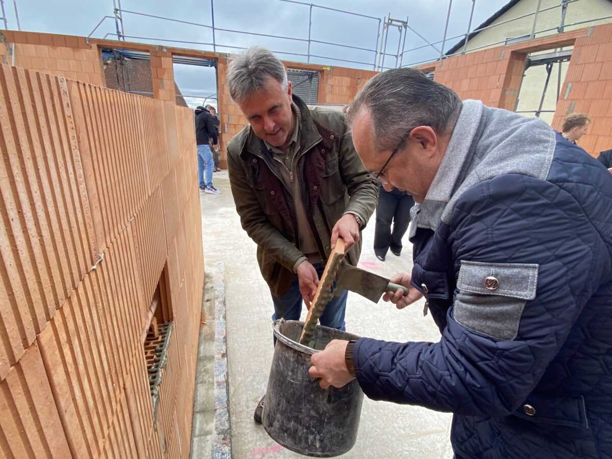 Die Arbeiten an der „Tagespflege St. Jodok“ im ehemaligen „Jacklanwesen“ in Tännesberg laufen bereits und die Wand mit der Nische für den Grundstein, in dem alle Daten über das Gebäude enthalten sind, ist hergerichtet. „Gemeinsam gestalten wir eine lebenswerte Dorfgemeinschaft und heute legen wir den Grundstein für eine Tagespflege, die älteren Menschen Sicherheit, Würde und Teilhabe schenkt“, begrüßte Erster Bürgermeister Ludwig Gürtler vor allem die Vertreter der Baufirma Alt, des Amtes für ländliche Entwicklung, der Caritas, des Architekturbüros und Mitglieder des Marktgemeinderates.