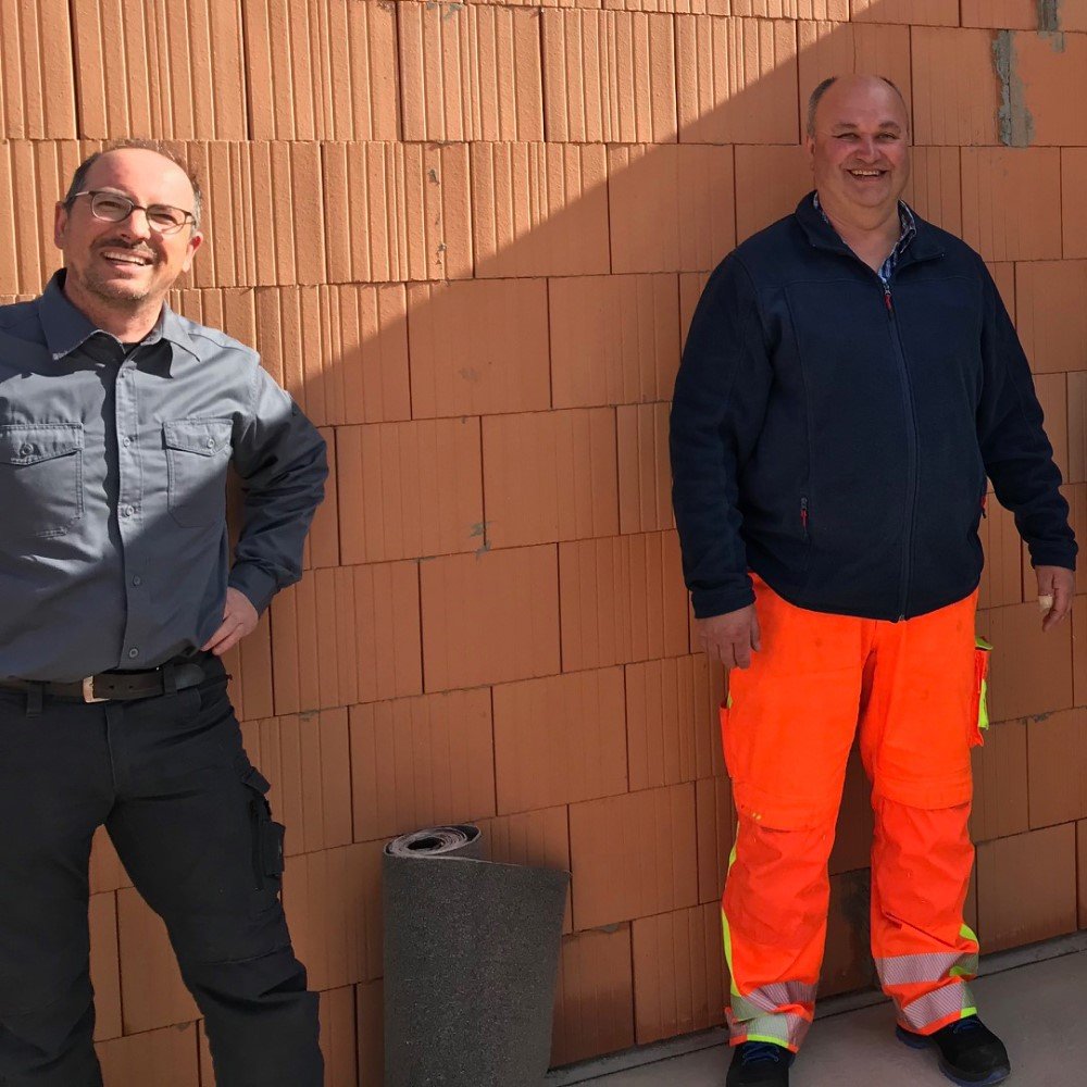 Bürgermeister Karlheinz Budnik und der Feuerschutzreferent Thomas Wilhelm waren über den zügigen Baufortschritt durch die Firma Käß Bau sehr erfreut.