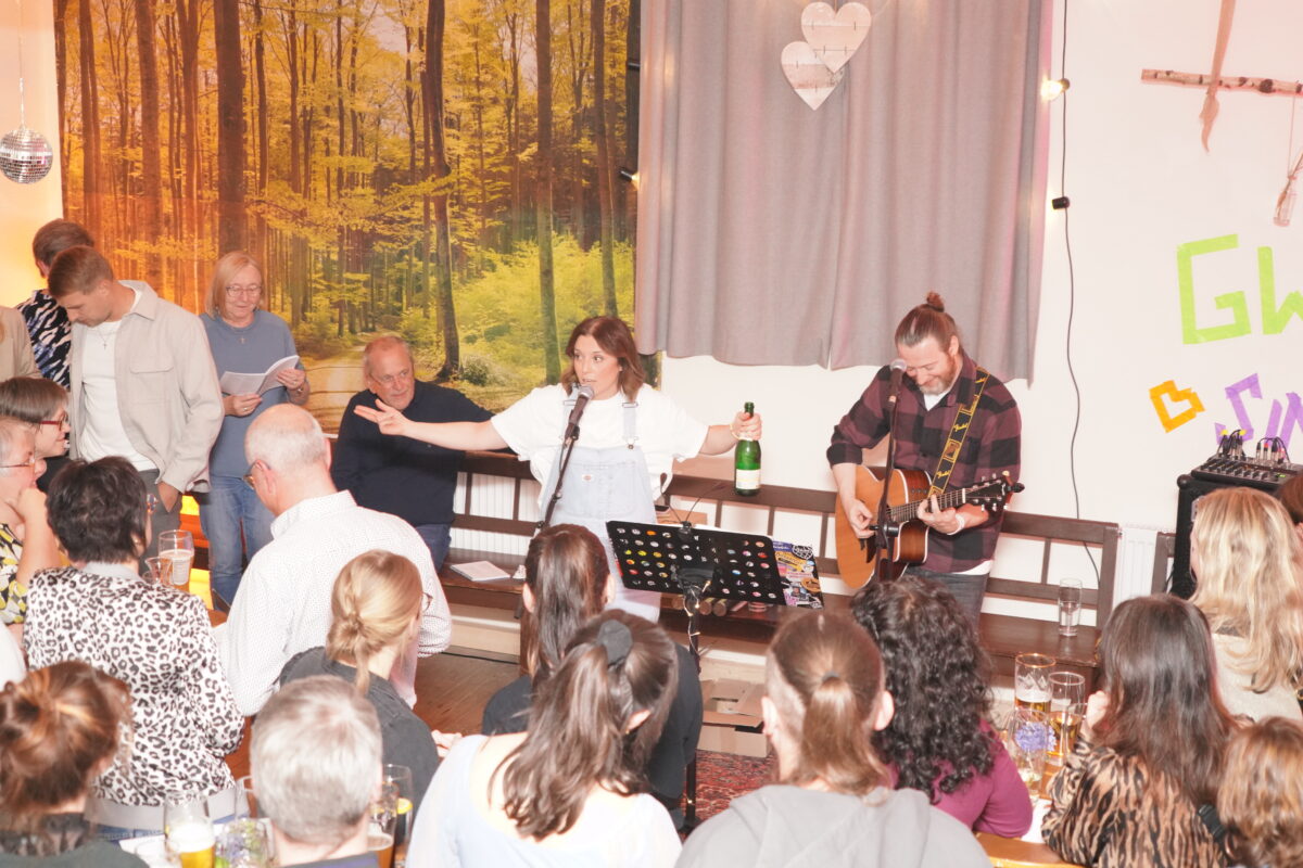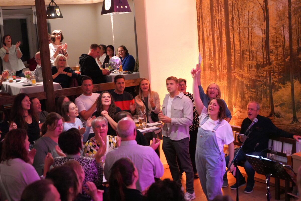Es folgten Gassenhauer wie „Hallo Klaus“ von Nickerbocker, „Cordula Grün“ sowie Udo Jürgens „Ich war noch niemals in New York“. Wichtig war an diesem Abend der Spaß bei den Lieder, dass das Trio Franzi – Jens und Besucher erstaunlich schön sangen, manche fanden dazu sogar einen Tanzschritt.