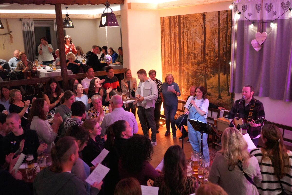 Die Besucher durften sich aus dem „Songbook“ mit dem Titel „Sing Along“ eines der vielen schönen, herrlich peinlichen und mitgrölbaren Lieder aussuchen, die dann im Laufe des Abends als „Betreutes Singen“ mit einer sich steigernder Lautstärke im Kühnhauser-Kneipenchor gesungen wurden.