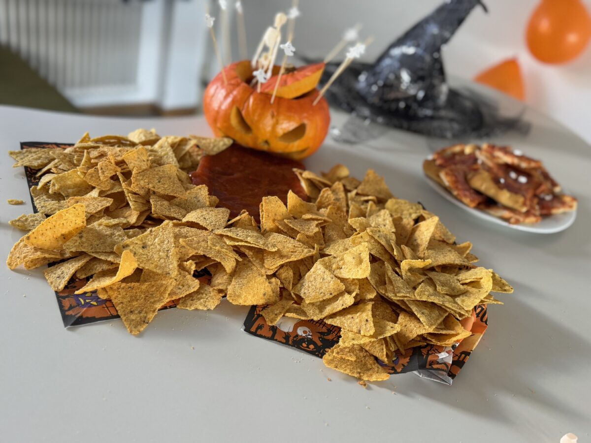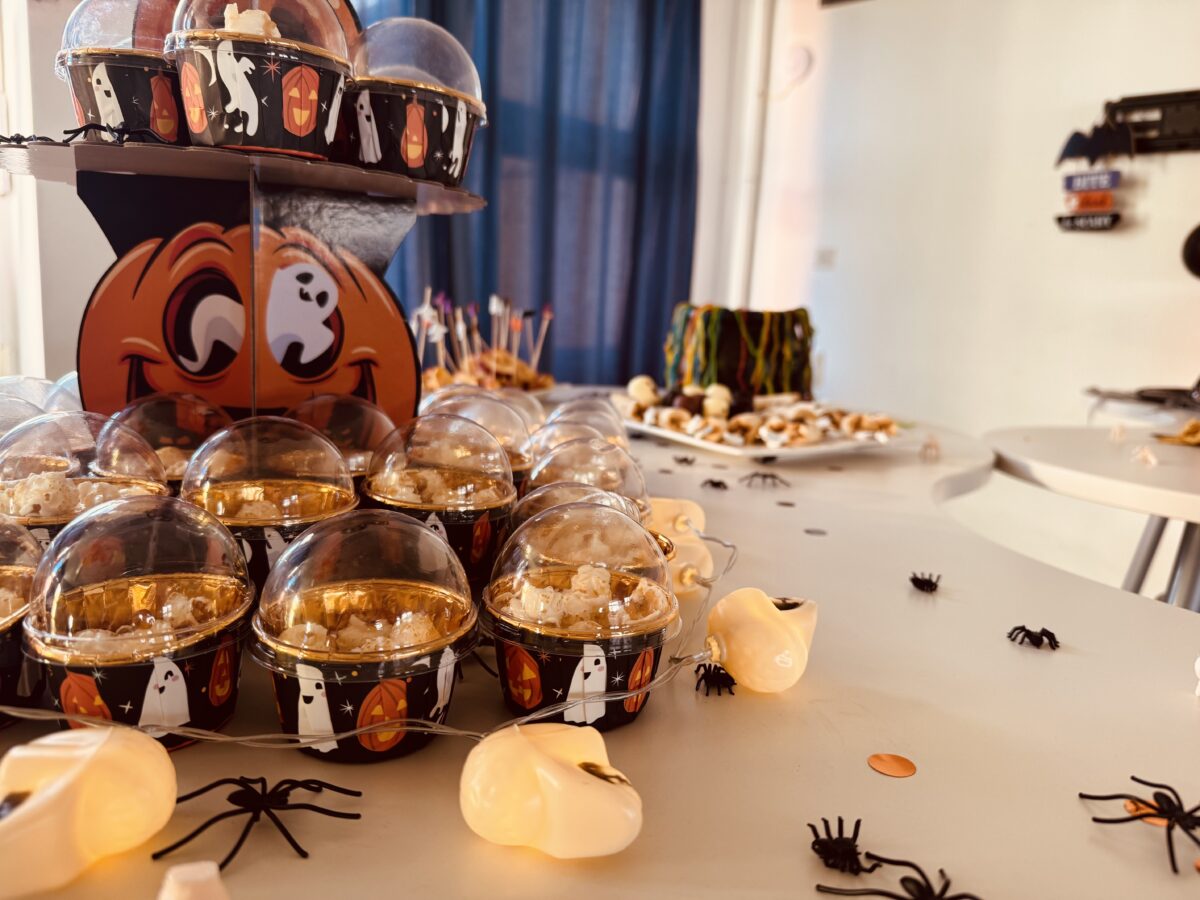 Beim gemeinsamen Beisammensein genossen die Jugendlichen passende Snacks und Getränke, unterhielten sich und sorgten für eine Prise Gruselstimmung.