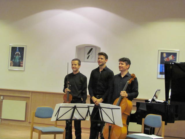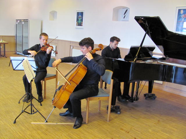 Die drei jungen österreichischen Musikvirtuosen Markus Koropp (Piano), Nitai Music (Geige) und Felix Obendorf (Cello) beherrschen nicht nur akademisch ausgebildet alle technischen Finessen, sie gestalten die ausgewählten Klaviertrios ihres hochrangigen Konzertprogramms selten aufgeführter Werke mit intensiver musikalischer Affinität und vor allem lebten sie die präsentierten Stücke aus innerem Impetus heraus. Sie erwiesen sich durch nuancenfeine Interpretation als Kammermusiker bester Güte mit energetischer Frische, jugendfroher Musizierwilligkeit, vitaler Virtuosität und werkgerechter Interpretation. Sie agierten nicht als distanzierte Könner, sondern machten sich die Gefühle mit Emphase zu eigen.