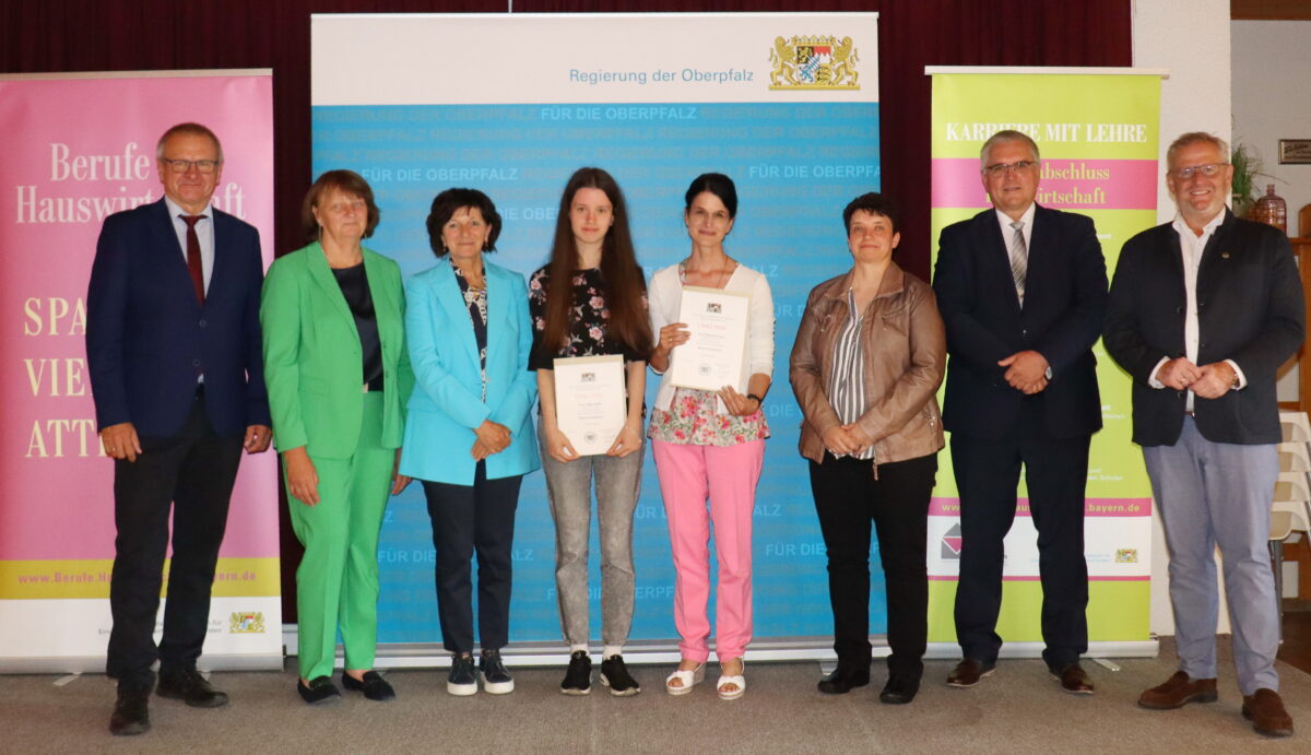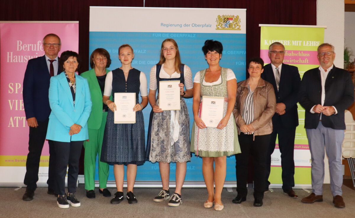 Bis zu drei Jahre Zeit, Energie, Fleiß und großen Willen investierten 41 Absolventinnen und Absolventen in Regensburg, Schwandorf, Amberg-Sulzbach, Neustadt/WN Tirschenreuth und Kelheim in ihre Ausbildung zur Hauswirtschafterin beziehungsweise zum Hauswirtschafter und dürfen nach erfolgreich bestandener Abschlussprüfung von nun an die Berufsbezeichnung “staatlich anerkannte/r Hauswirtschafter/in” führen. Ihren Erfolg konnten sie im Turmrestaurant Obermeier in Klardorf im Rahmen der feierlichen Freisprechungsfeier mit Übergabe der Zeugnisse und Urkunden feiern. Diese erhielten sie von Johannes Hebauer, Leiter des Bereichs Landwirtschaft und Ernährung an der Regierung der Oberpfalz und den Prüfungsausschussvorsitzenden Bettina Aufschläger, Corinna Heimerl und Kerstin Bauer.