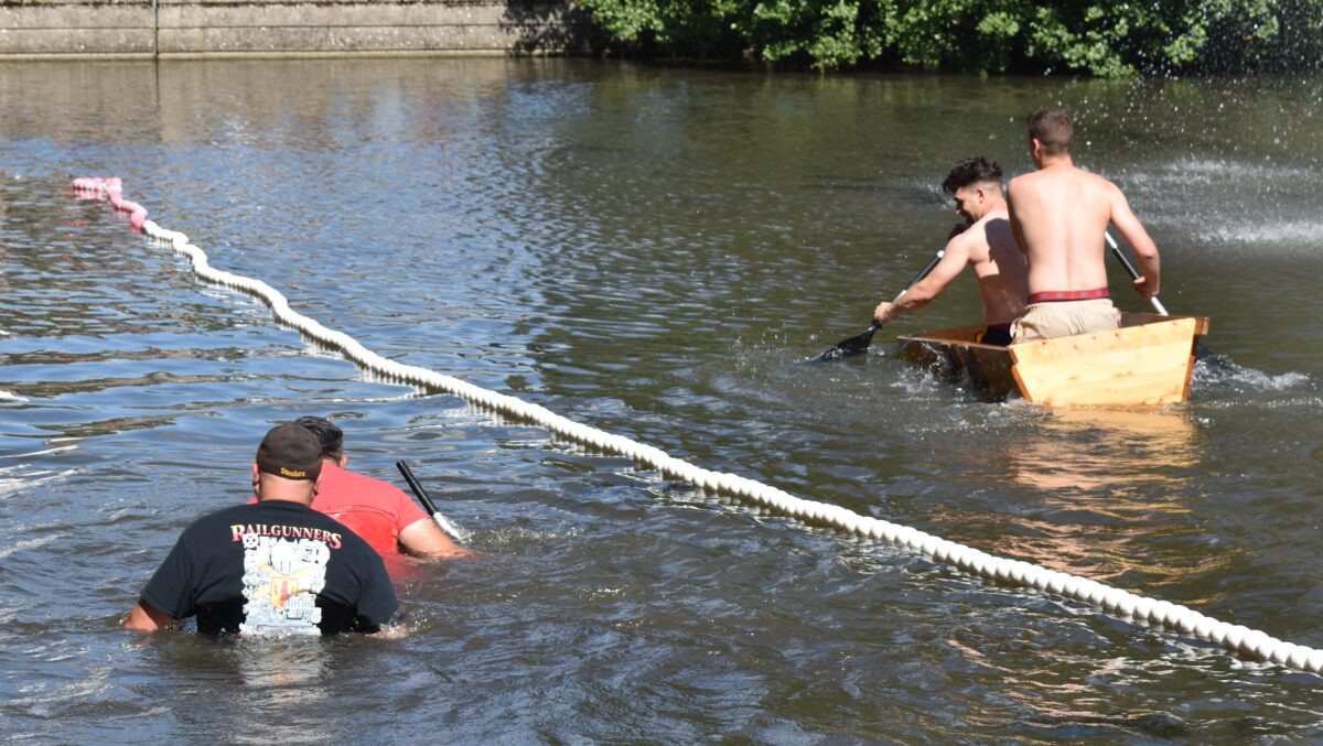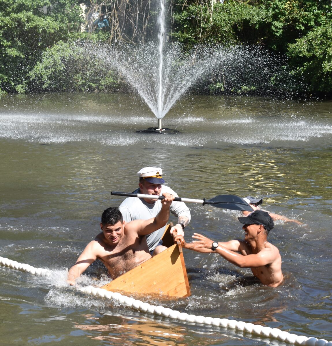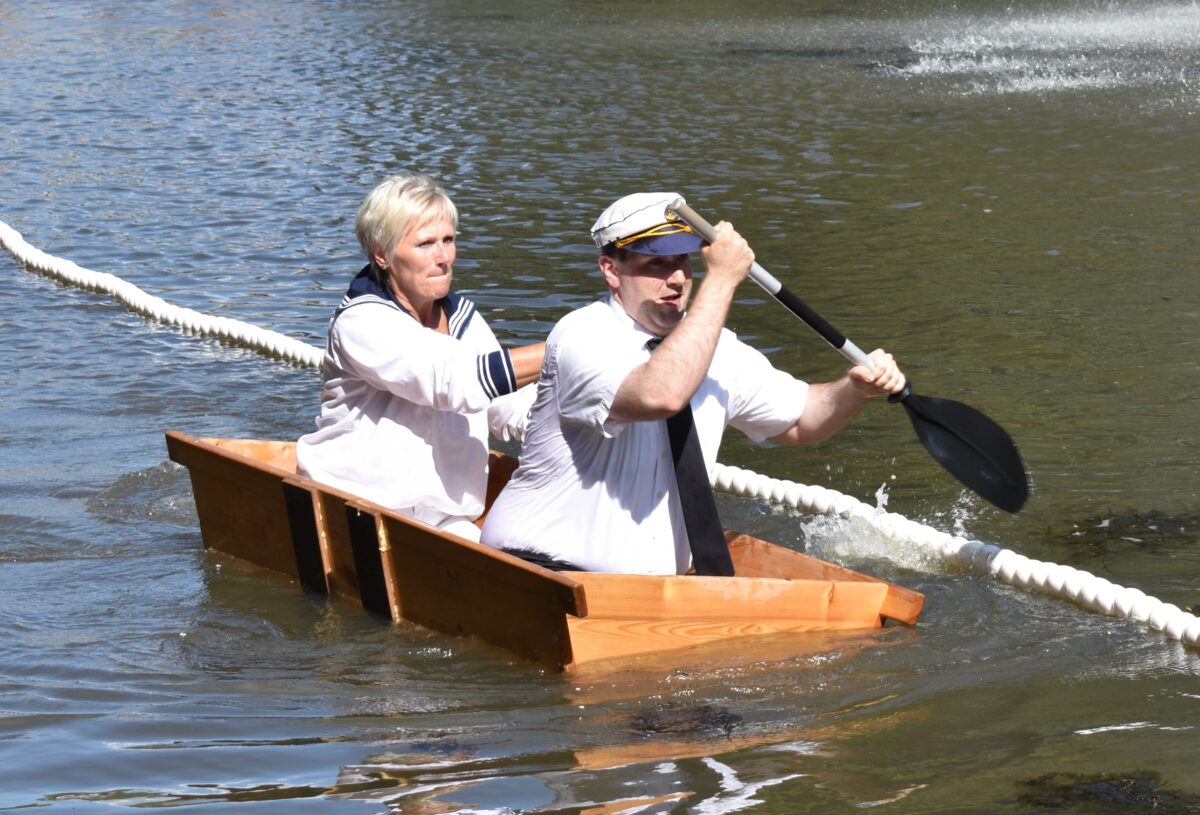 Aber auch alle anderen hatten ihren Spaß – darunter einige amerikanische Staatsbürger sowie das Team “Schirmherrschaft” mit Anita Stauber und Pfarrer Daniel Fenk im Marine-Look. Diese schlugen sich wacker und landeten nicht im Stadtweiher, im Vergleich zu einigen Anderen.