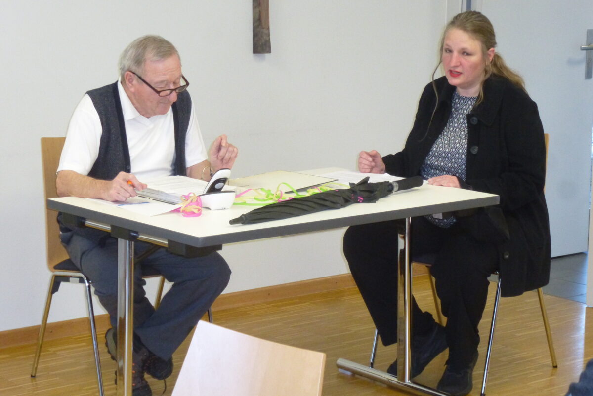 Die schon einmal verlobt gewesene Sofie kam persönlich ins Büro und äußerte zehn Vorstellungen von einem Mann vor der Heirat. Finklstein schaute sie groß an, nachdem sie Studienrat, Generaldirektor und Millionärssohn abgelehnt hatte, und schlug einen Maurer vor. „Ja, was wäre die ideale Partie, verdient bestens, arbeitet sich nicht tot, freies Wochenende.“ Finklstein: „Den bekommen Sie aber nicht für 20.000 Euro, da müssen Sie mindestens 100.000 Euro bieten.“ Das Vierer-Team tanzte zu „Wenn wir alle Englein wären, dann wär die Welt nur halb so schön“ und animierte mit weiteren Stimmungsliedern wie „Rucki Zucki“, „Klingeling, es kommt der Eiermann“ und beim „Ententanz“ zu passenden Bewegungsübungen. Die Geburtstagskinder erhielten ein kleines Geschenk und freuten sich über das obligatorische Gratulationslied. Bei Krapfen, warmen Wienern und Getränken – das Faschings-Stamperl „Waldbeere“ inklusive – ließen es sich die Besucher, unter ihnen Pfarrer Varghese Puthenchira, gut gehen.
