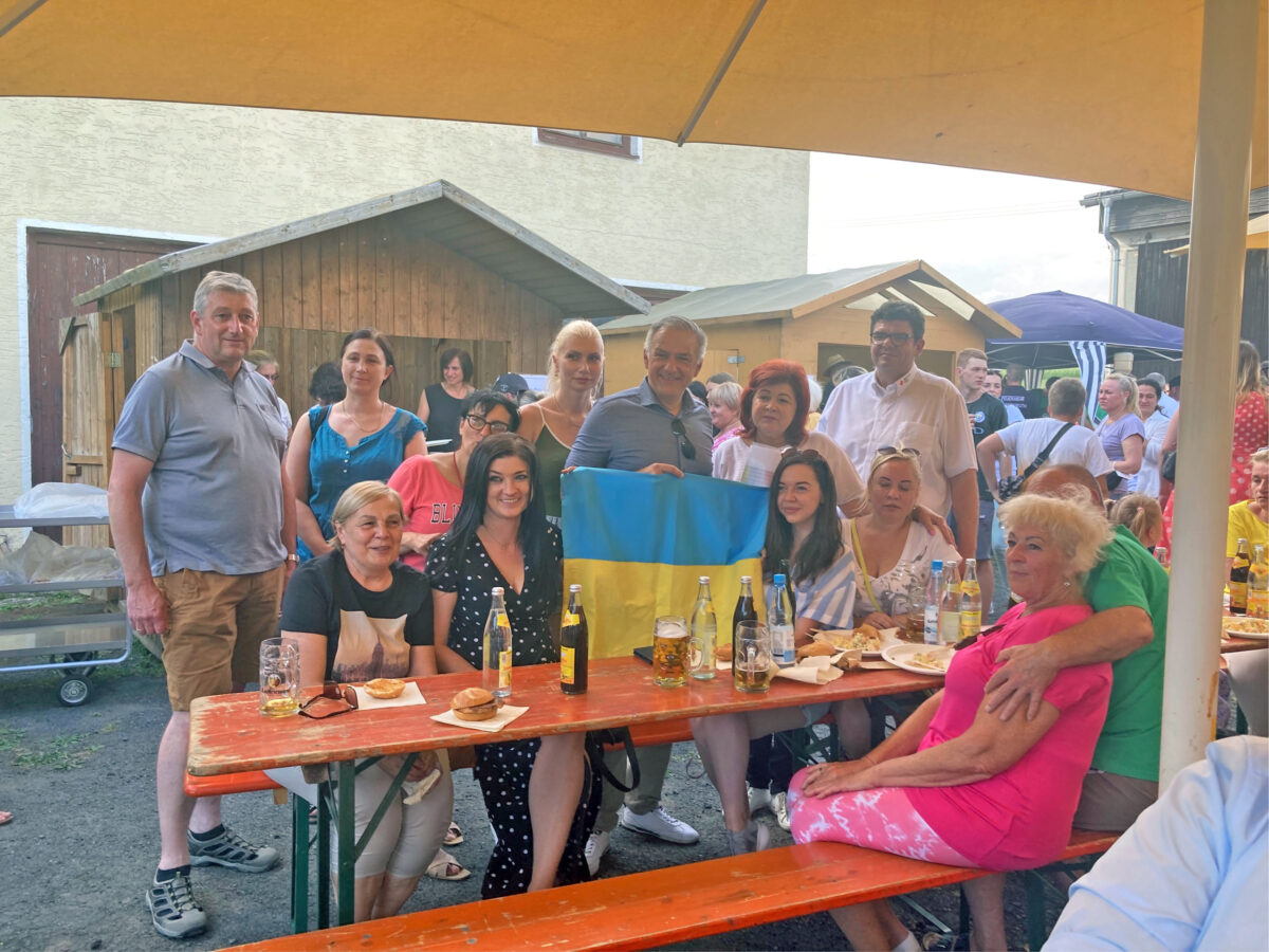 Das Fest fand vor der Notunterkunft in Fockenfeld statt. Neben vielen haupt- und ehrenamtlichen Mitarbeitern aus vielen Organisationen waren auch jede Menge Ukrainerinnen und Ukrainer mit vor Ort. Mit dabei waren außerdem Landrat Roland Grillmeier sowie BRK-Kreisgeschäftsführer Holger Schedl.