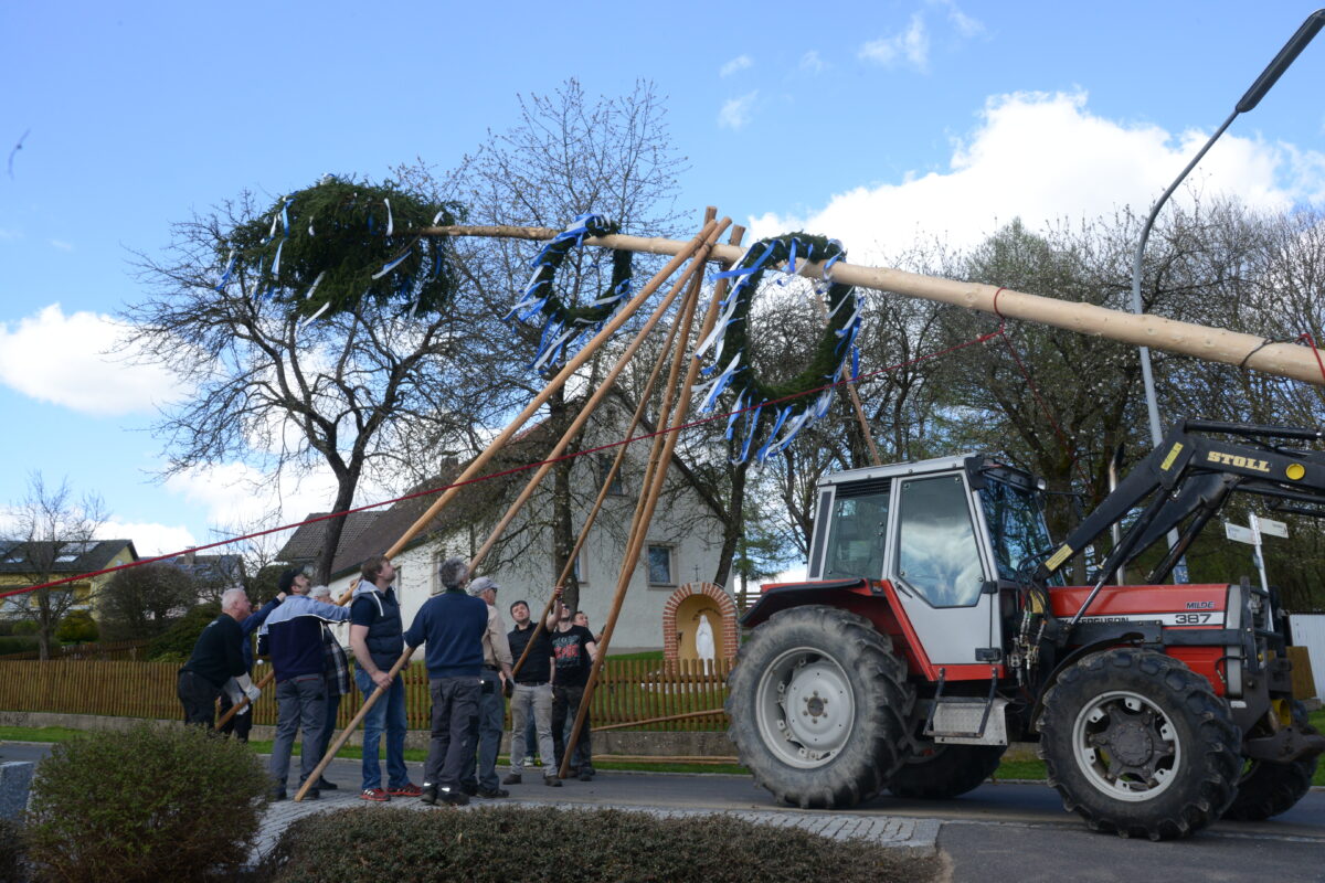 Fast um die Wette wurden am Sonntag in Vöslesrieth, Pleystein und Spielhof die Maibäume aufgestellt. Am Ersten Mai kamen noch die Maibäume in Miesbrunn und Spielhof dazu. In Pleystein war nach dem Bruch eines Maibaums im vergangenen Jahr die Spannung groß, ob es heuer wieder ein Malheur gibt.