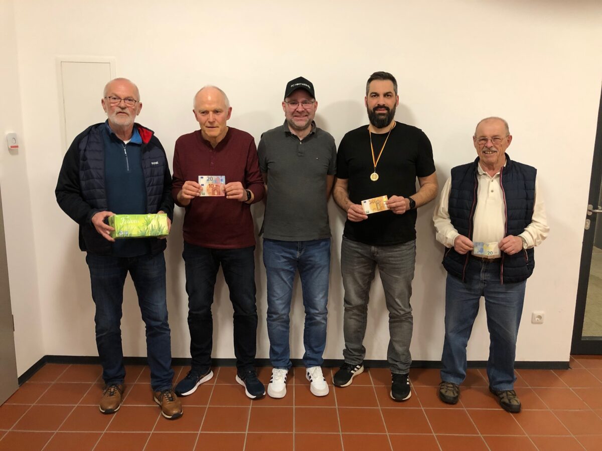 Gespielt wurde mit Wenz, aber ohne Geier. Statt „der Alte muss“ gab es ein Spiel über Kreuz. Nach knapp drei Stunden stand Michael Rauch, der bereits zur Halbzeit führte, als Sieger mit 126 Punkten fest. Eine Medaille und 50 Euro waren sein Lohn. Josef Bösl (98 Punkte, 30 Euro), Bruno Murr (85 Punkte, 20 Euro) und Benny Walberer (82 Punkte) folgten. Vorjahressieger Willi Uschold wurde mit 68 Punkten Fünfter und Verena Kormann (66 Punkte) ließ als sechste viele Herren hinter sich. Alle mit Pluspunkten erhielten einen Preis.