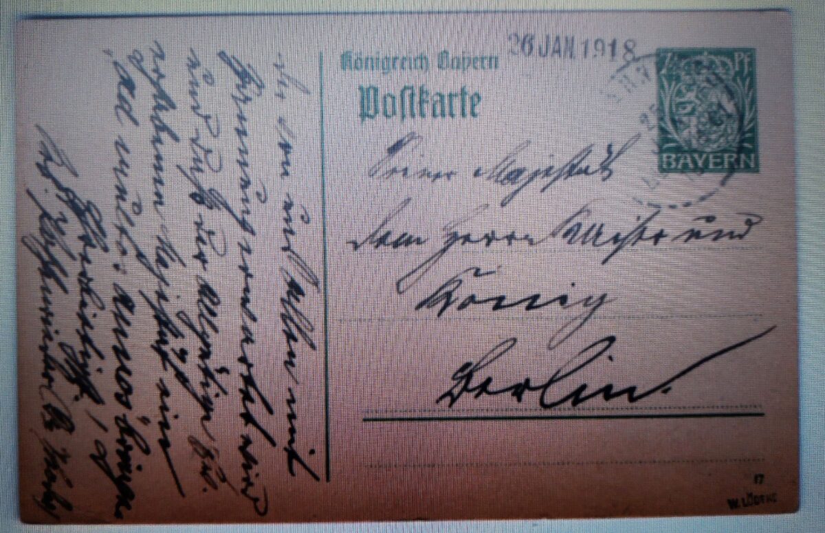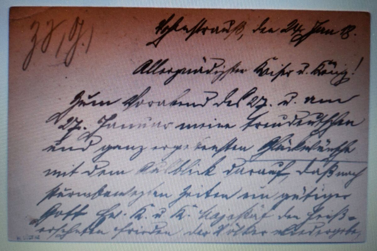 Endt sammelt überwiegend Exemplare aus vergangener Zeit und dabei ist ihm über die modernen Medien eine Postkarte aus dem Jahr 1918 zu einem günstigen Preis angeboten worden. Er besorgte sie sich und staunte nicht schlecht. Absender dieser Postkarte war Sebastian Poschenrieder aus Vohenstrauß. Mit der Postkarte gratulierte er dem Deutschen Kaiser Wilhelm II zu seinem 59. Geburtstag am 27. Januar. Damals wusste oder ahnte keiner, dass es der letzte Geburtstag des Kaisers in Deutschland werden sollte.